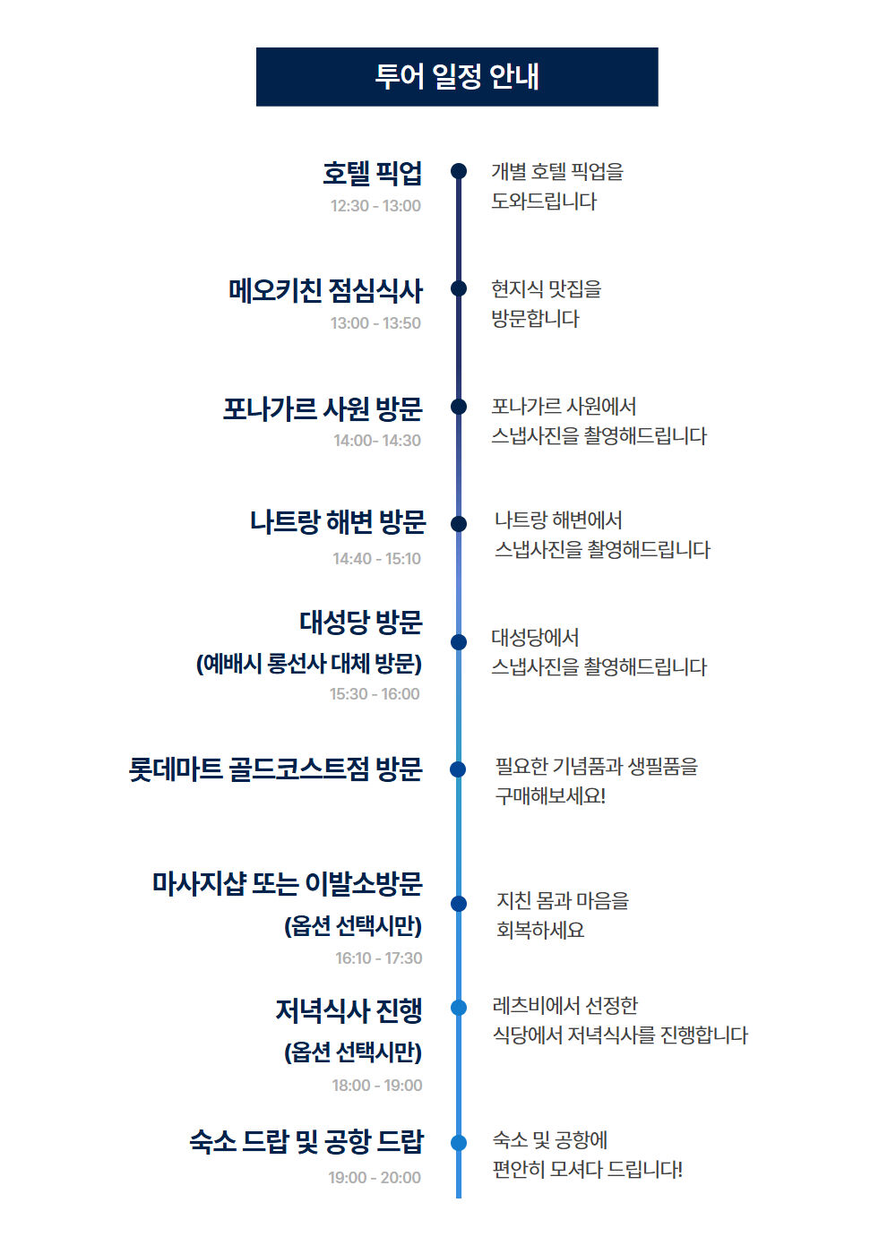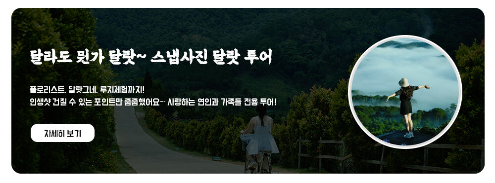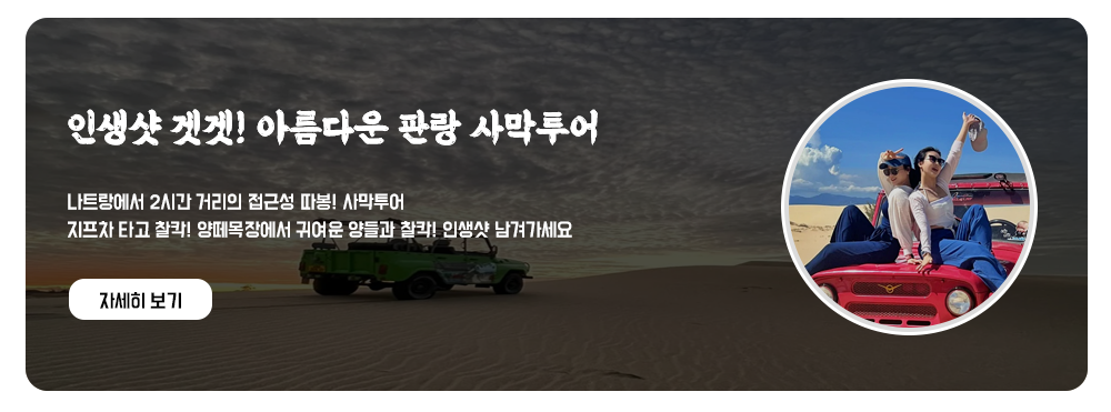 [스냅사진] 나트랑 시내 체크아웃 투어 (공항샌딩포함) 평점 5 · 리뷰 28건 포함 1.스냅사진기사 2.시내권 무료 픽/샌딩 3.포나가르사원 / 대성당 등 입장료 불포함 1. 점심&저녁 식사비용 2. 인당 매너팁 2$(5만동) 3. 카페 음료 비용 4. 시외권역 픽/샌딩비 마이리얼트립에서 예약하기 나트랑 목록 도시 목록