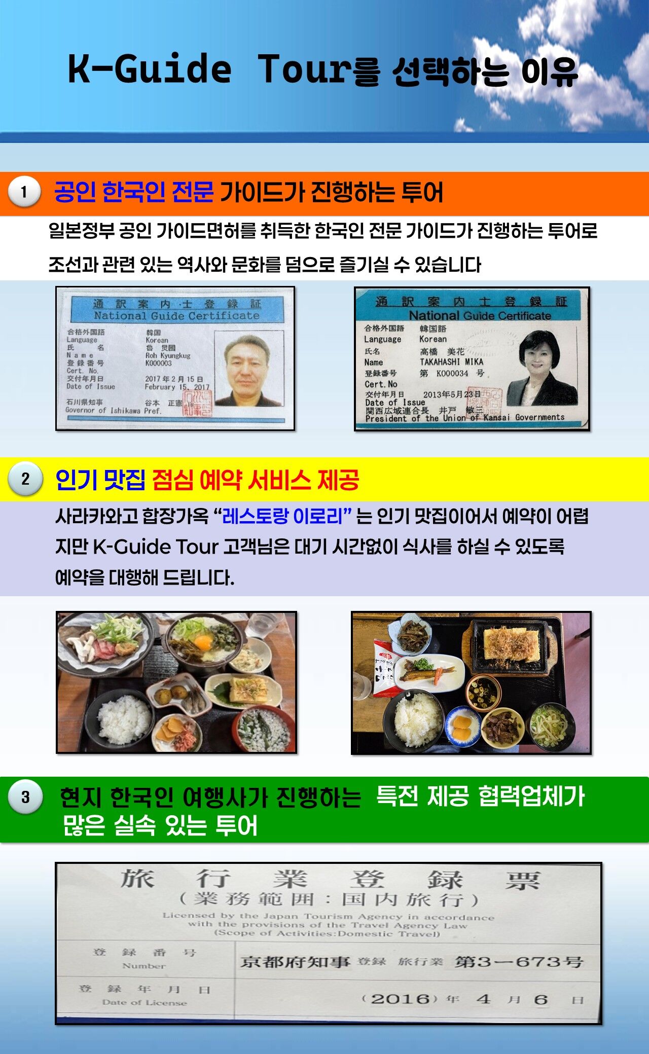 - 점심예약은 투어 당일 가이드 안내에 따라 단체톡으로 예약을 신청 할 수 있습니다.