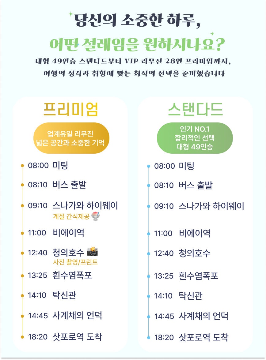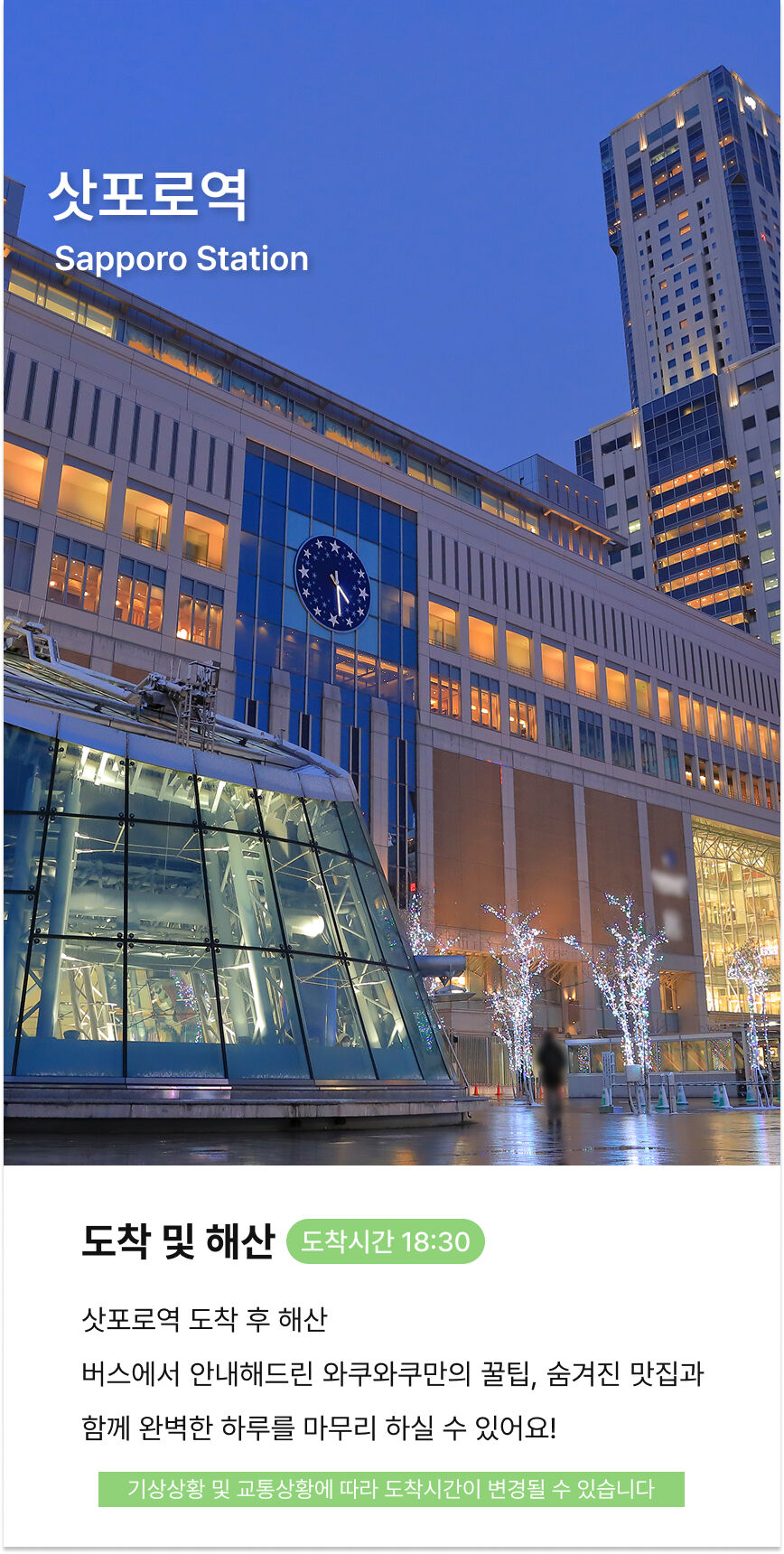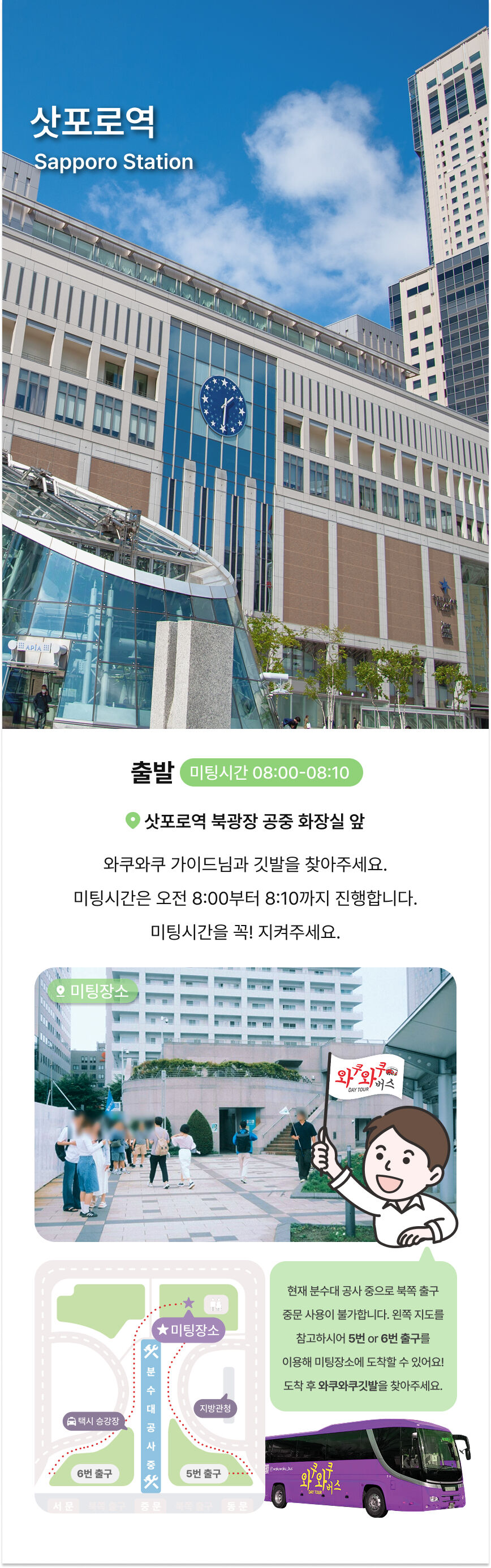 [스탠다드] 북해도 비에이 후라노 버스투어 삿포로 일일투어 홋카이도 와쿠와쿠 1호선 준페이 평점 4.9333333333333 · 리뷰 15건 프리미엄 상품 보러가기 포함 현지 한국인 가이드 일일버스투어 비용 불포함 - 자유 중식 비용 및 개인경비 - 관광지 입장료 - 여행자보험 마이리얼트립에서 예약하기 삿포로 목록 도시 목록