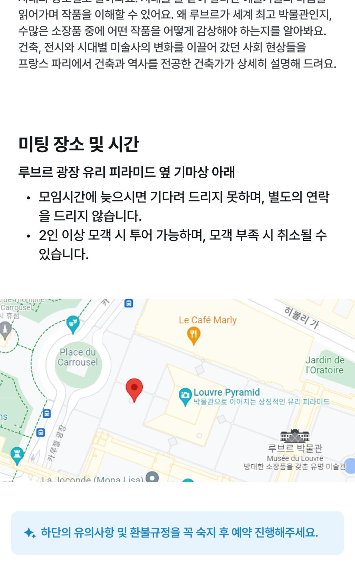 프랑스 공인 가이드가 루브르에 요청해 부여 되는 가이드 투어 티켓으로만 입장이 가능하시니 사전 티켓 구매를 완료하지 않은 예약은 취소 될 수 있습니다.