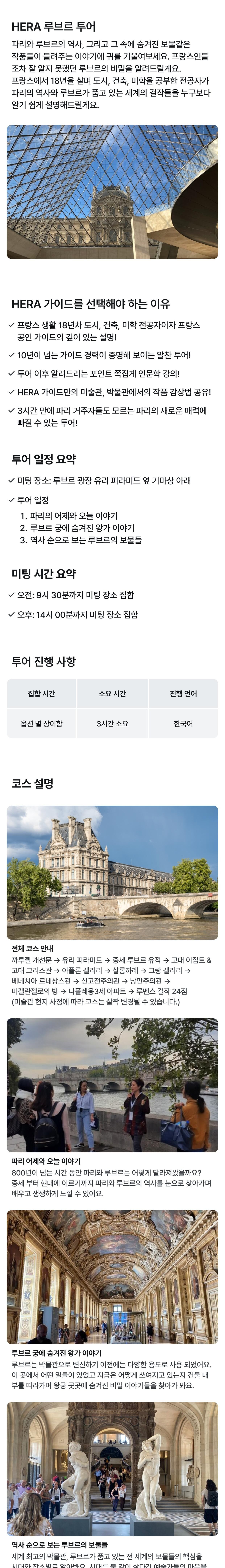 루브르의 새로운 규정에 따라 기존의 개인 티켓이나 뮤지엄패스로는 루브르 가이드 투어가 불가능합니다.