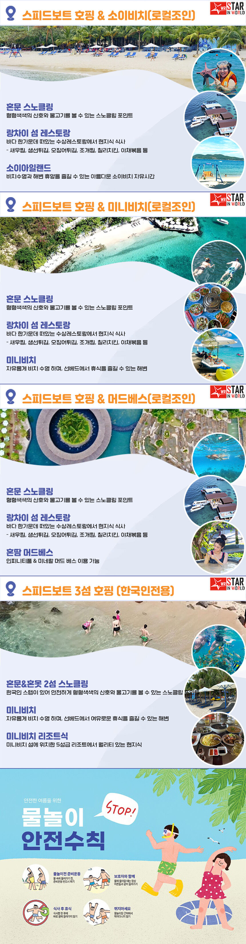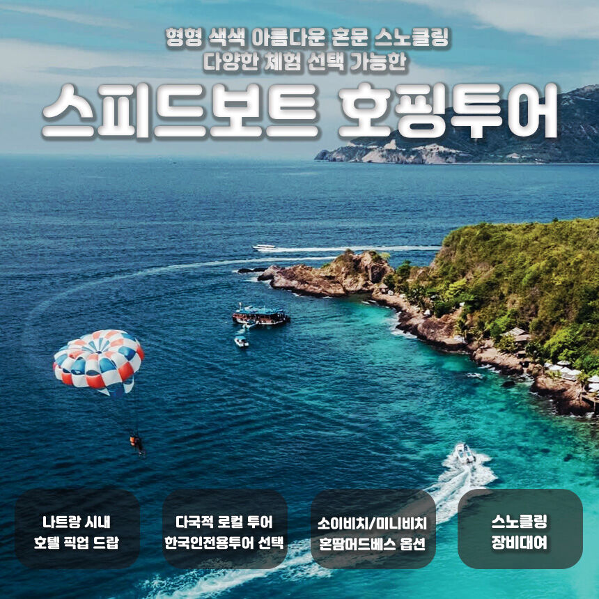 [나트랑] 스피드보트 스노쿨링 호핑투어 (소이비치 미니비치 혼땀머드온천 선택)