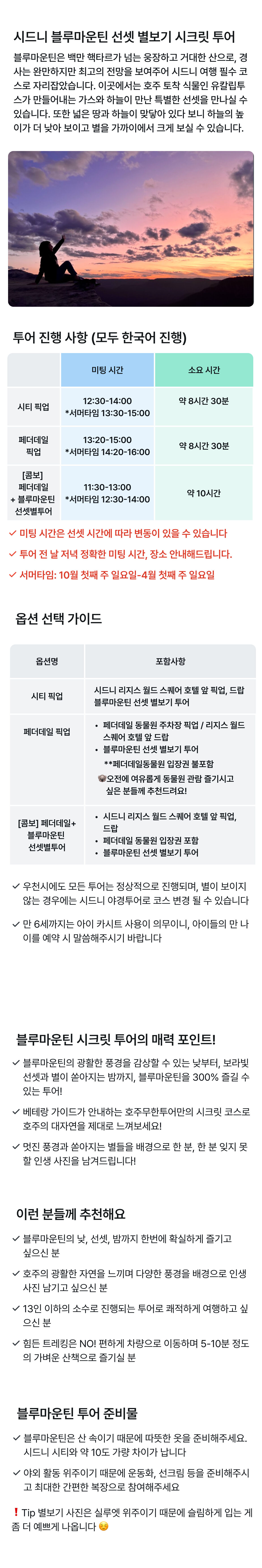 4월 블루마운틴 선셋 별보기 출발 시간