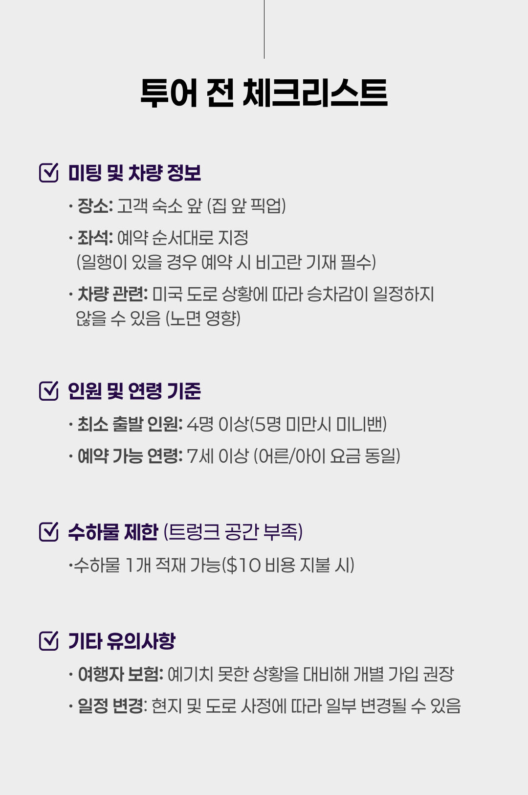 [뉴욕킹콩투어/뉴욕출발도착]워싱턴그룹투어당일/그룹(최대10인)/벤츠럭셔리밴으로편안한여행하기 평점 5 · 리뷰 8건 👀뉴욕킹콩투어 상품 더 둘러보기👀 포함 차량비, 유류비, 톨비, 가이드비, 가이드 팁, 무제한 인터넷 불포함 식사 및 개인경비, 개별 여행자 보험 마이리얼트립에서 예약하기 뉴욕 목록 도시 목록