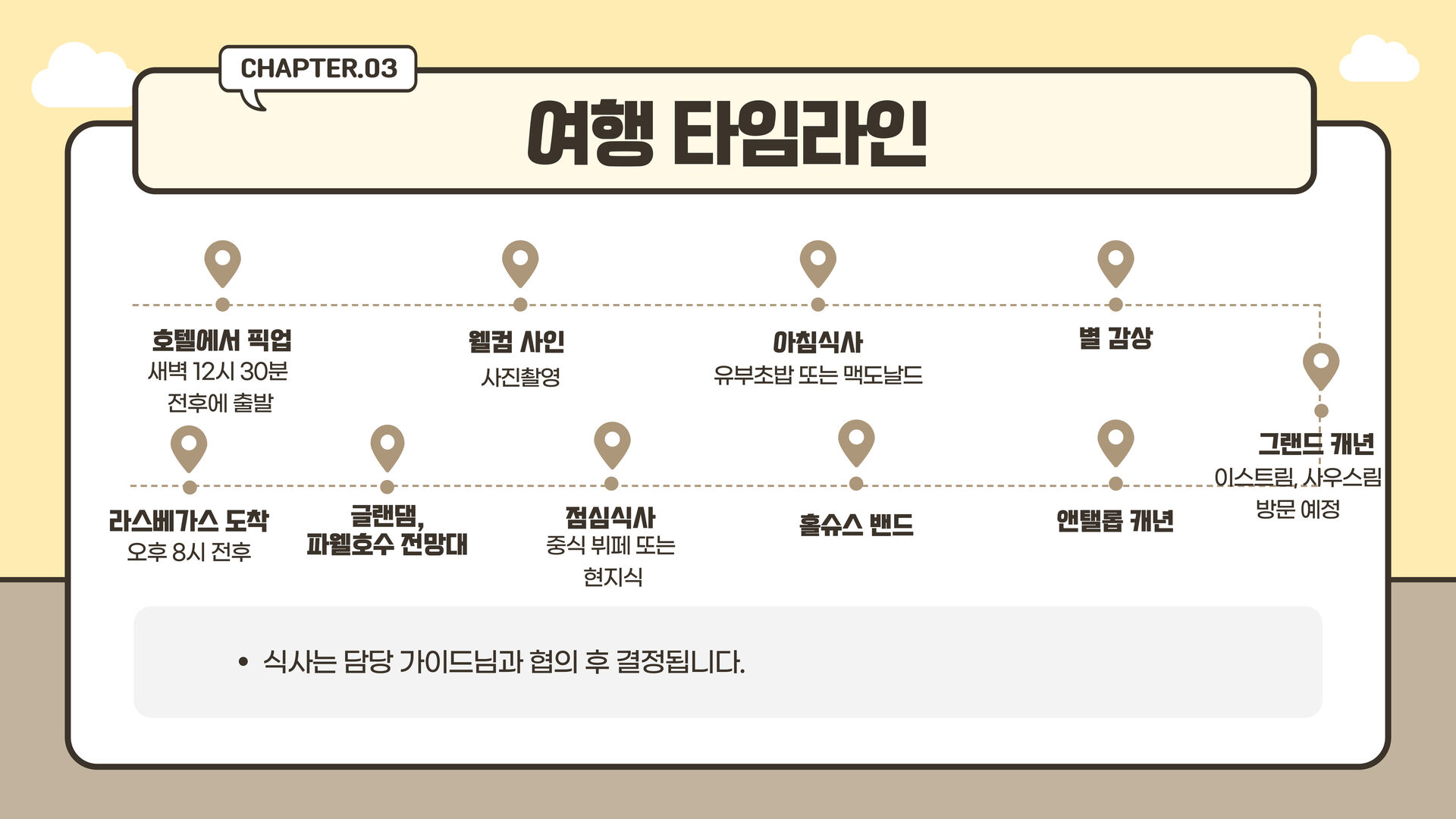 - 그랜드 캐년 헬기투어, 경비행기 투어를 원하실 경우 미리 연락 주시길 바랍니다.