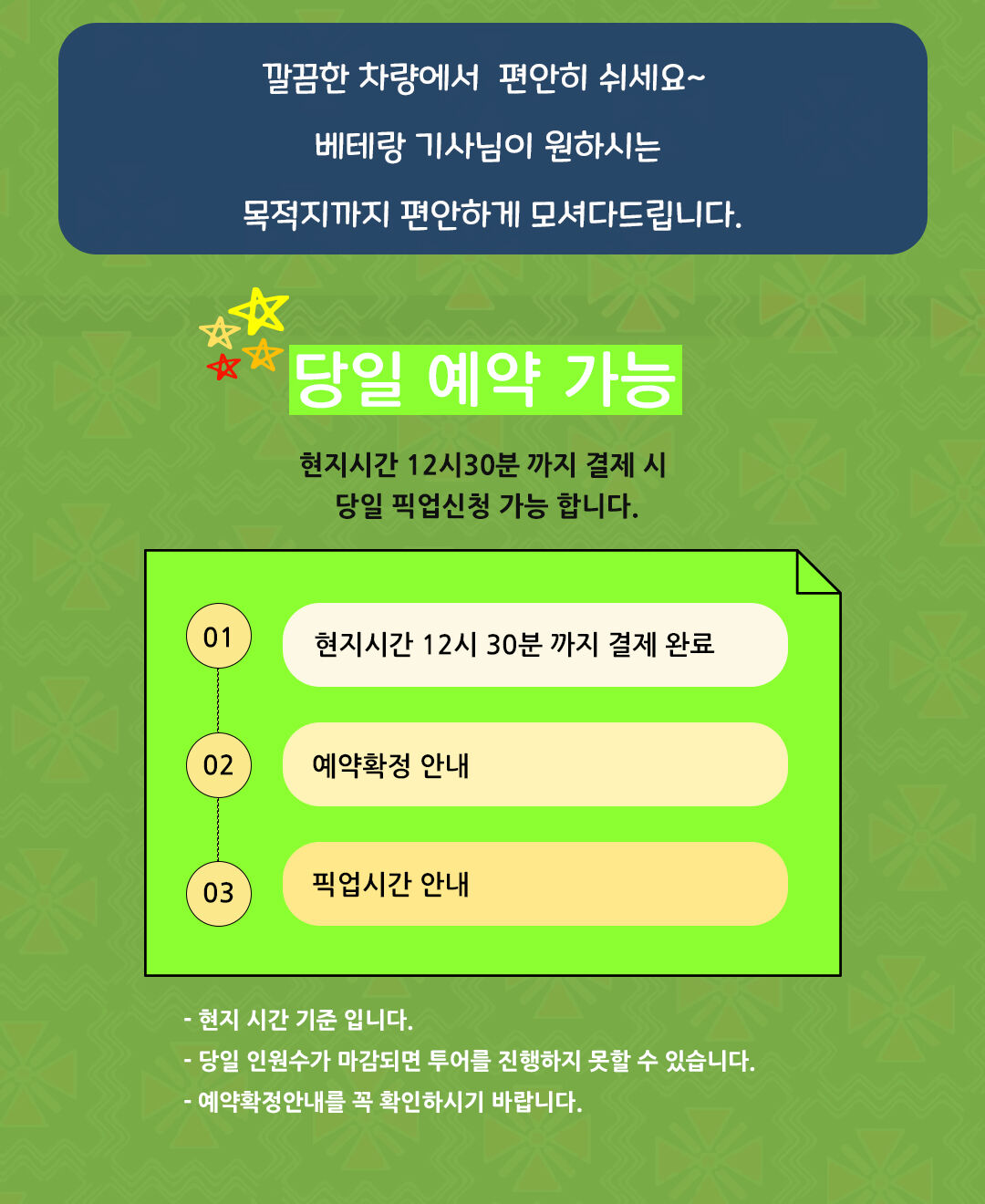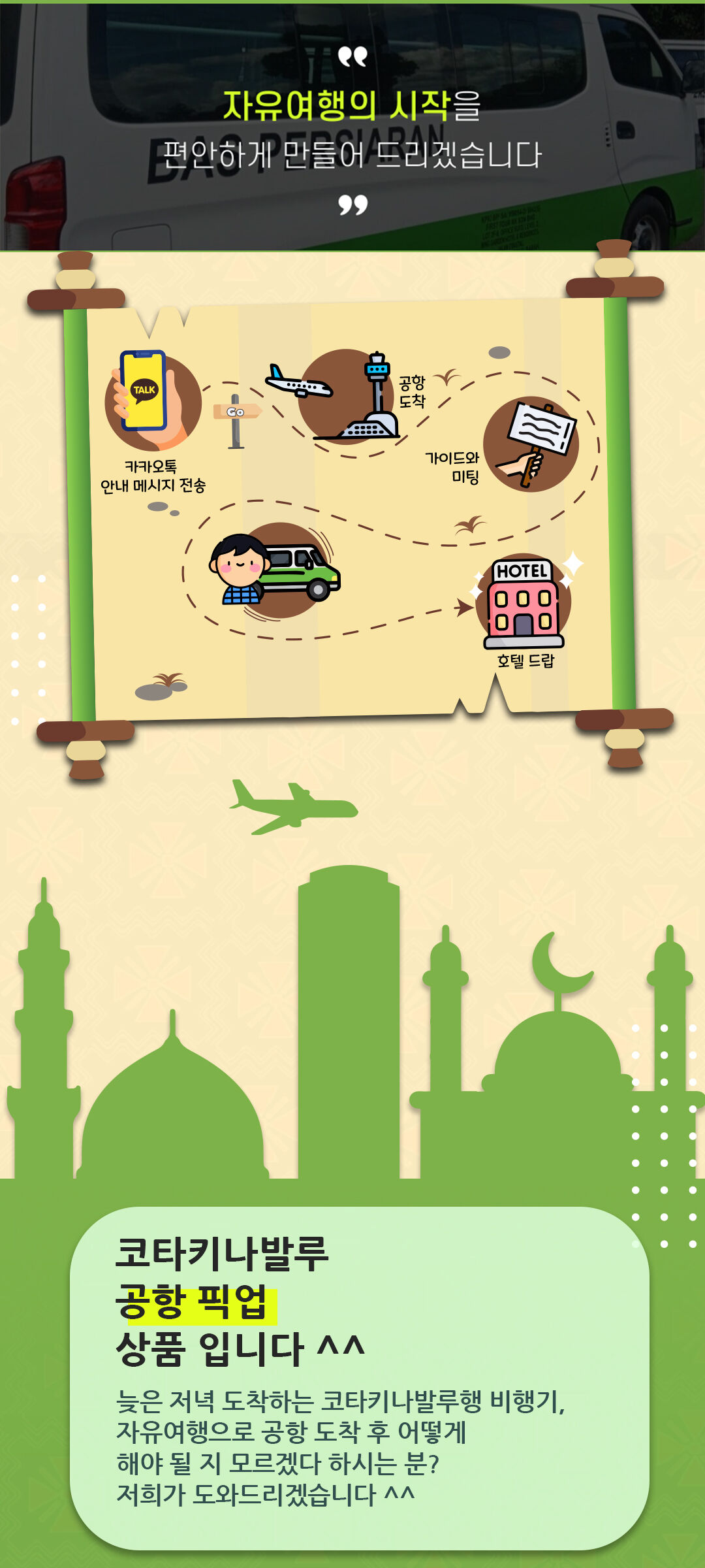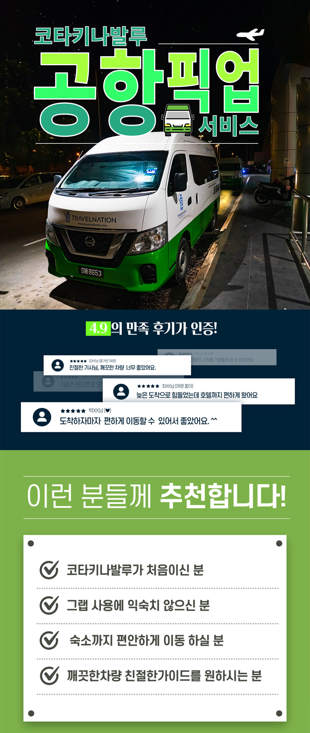 [코타키나발루 픽업] 공항 ↔ 숙소 픽업 샌딩 - VAN 평점 4.910447761194 · 리뷰 134건 포함 - 시내권 호텔 - 코타키나발루 국제공항 > 시내권 호텔/리조트/게스트하우스 - 가이드와 드라이버 - 정식 라이센스 van 차량 불포함 - 도착 후 호텔 체크인은 개별로 하셔야 합니다. - 개인 여행자보험 (필요 시 개별 가입 권장) - 기사 팁 - 시외권 지역 (시외권 지역은 픽업이 불가 합니다. / 가능 여부를 예약 전 마이리얼트립 메시지로 문의해 주세요.) 마이리얼트립에서 예약하기 코타키나발루 목록 도시 목록