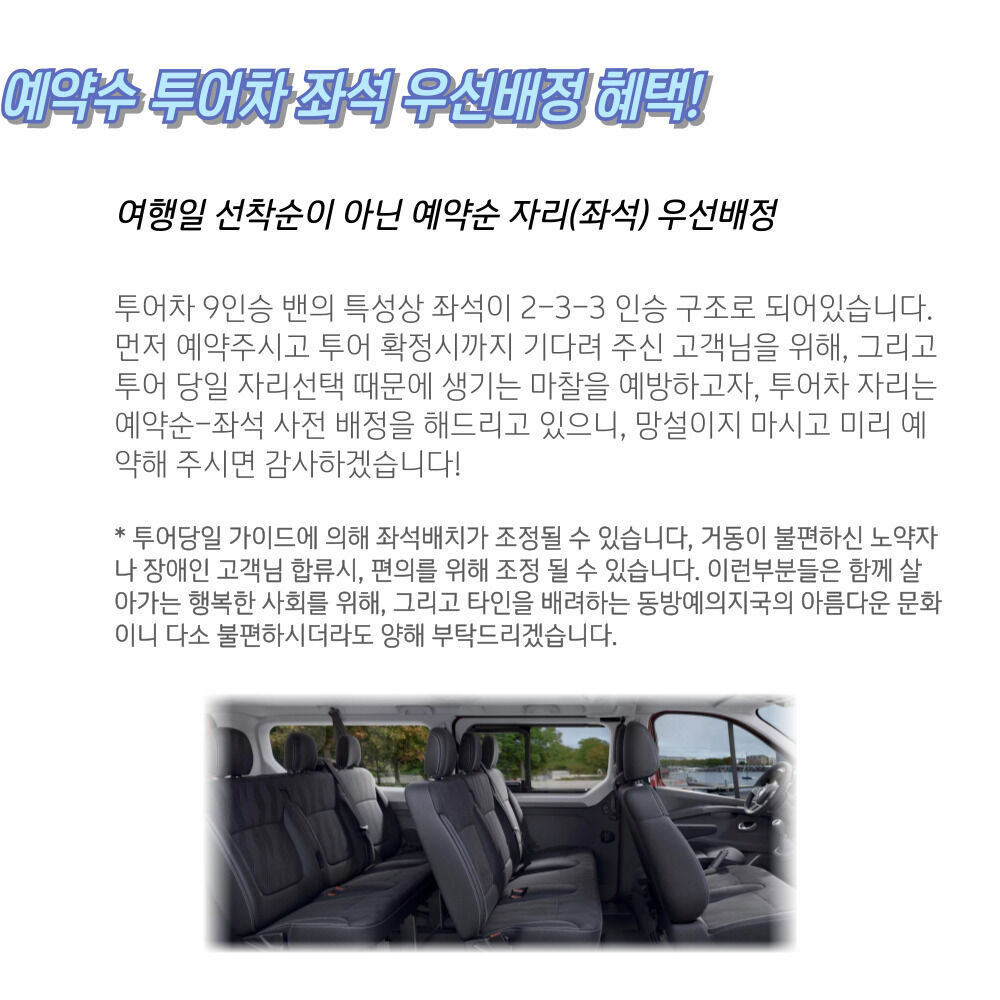 - ์ฐจ๋๋ณ ๊ณ ์๋๋ก ์ต๊ณ ์ ํ์๋์ ์ฐจ์ด(๋ฒ์ค90-110km, ์น์ฉ์ฐจ, ๋ฏธ๋๋ฐด130km)๋ก ์ธํด ๋น ๋ฅด๊ฒ ์ด๋์ด ๊ฐ๋ฅํฉ๋๋ค.