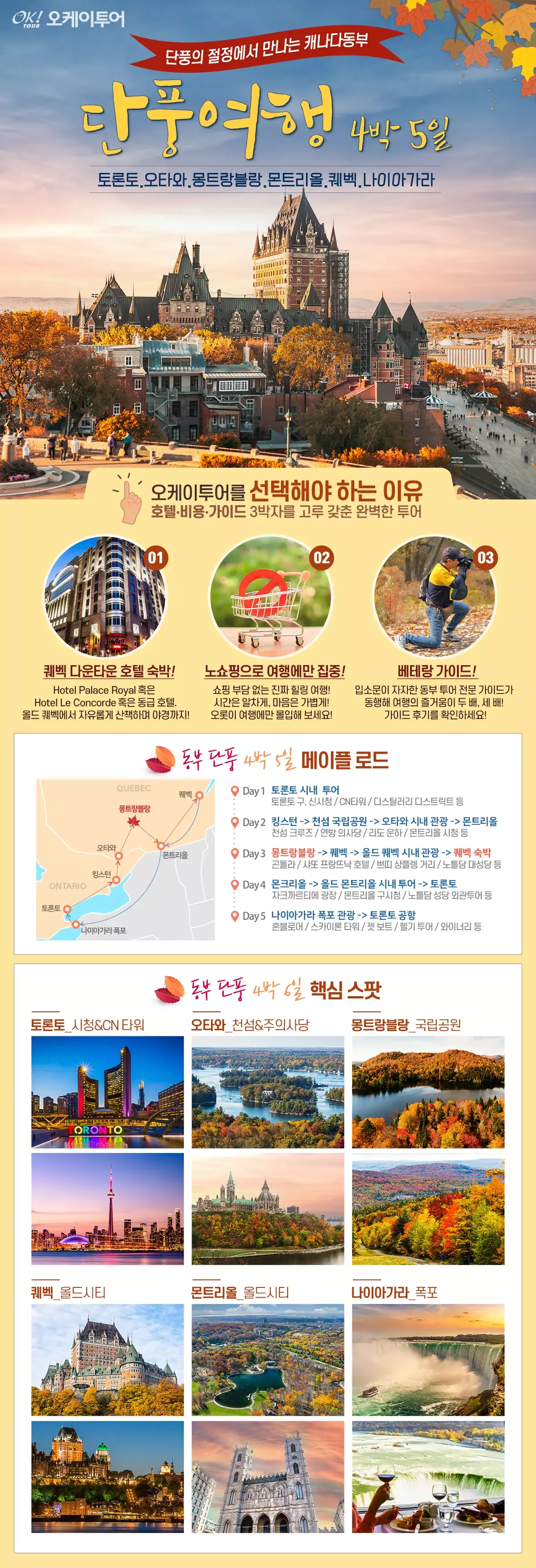 [4박5일/토론토출발] 오케이투어 퀘벡 · 몬트리올 · 오타와 · 나이아가라