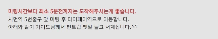 ◎ 시먼역 미팅은 정차 시간이 짧은 관계로 미팅 시간 준수 부탁드립니다.