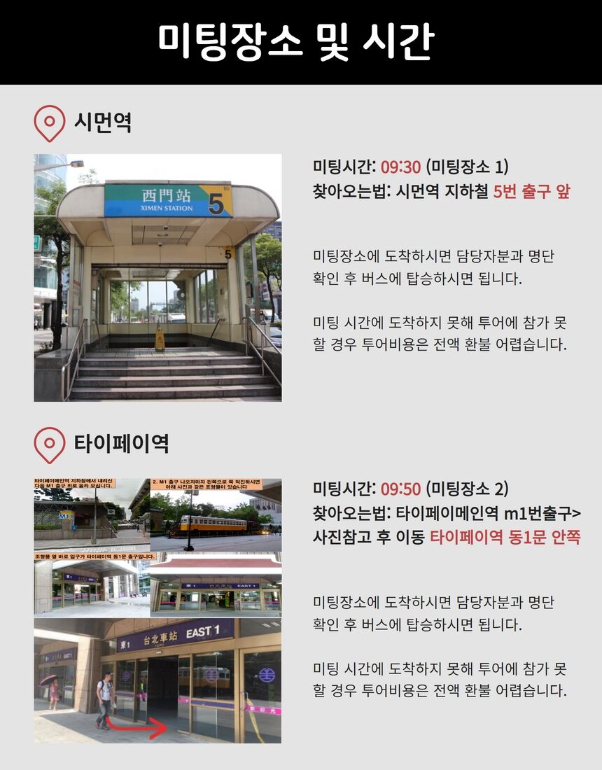 6. 미팅 장소(하차장소) 4곳 자유 선택! 지우펀-라오허제야시장-타이페이메인역-시먼