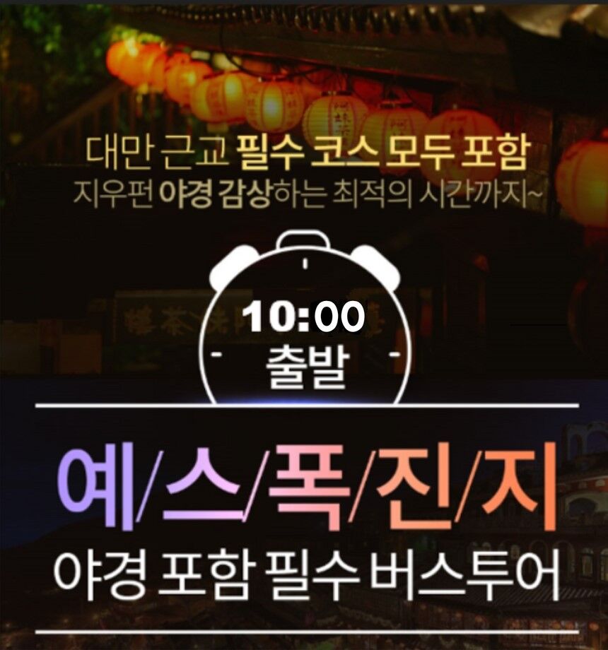 [100%출발! 10시 예스폭진지+야경] 대만버스투어 시먼역/메인역 탑승&야시장 하차가능