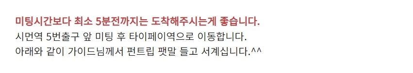 ◎ 시먼역 미팅은 정차 시간이 짧은 관계로 미팅 시간 준수 부탁드립니다.