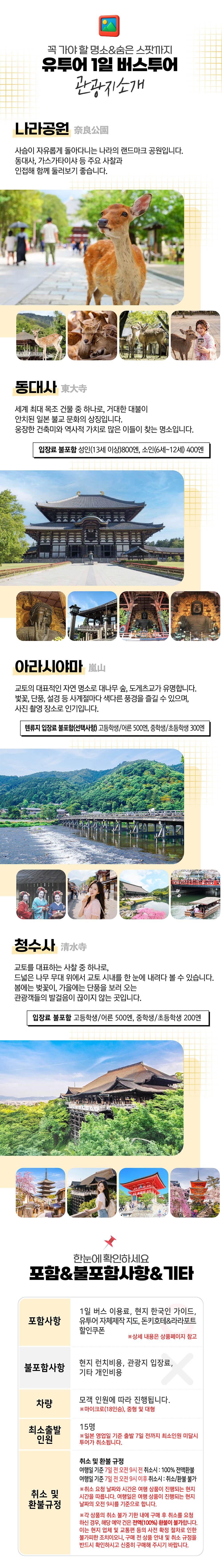 [유투어버스] 나라 교토 사슴공원 동대사N아라시야마N청수사 1일 버스투어