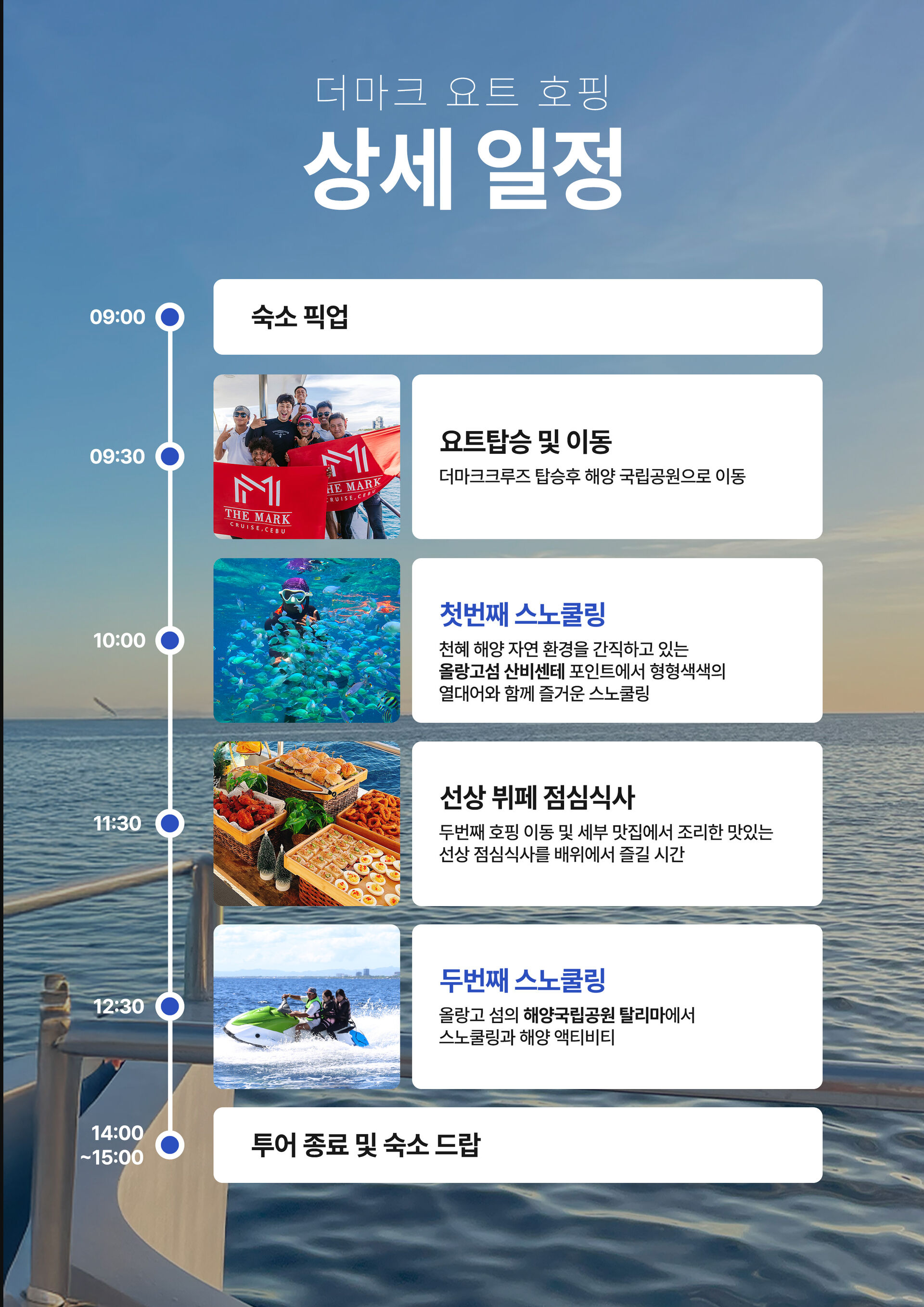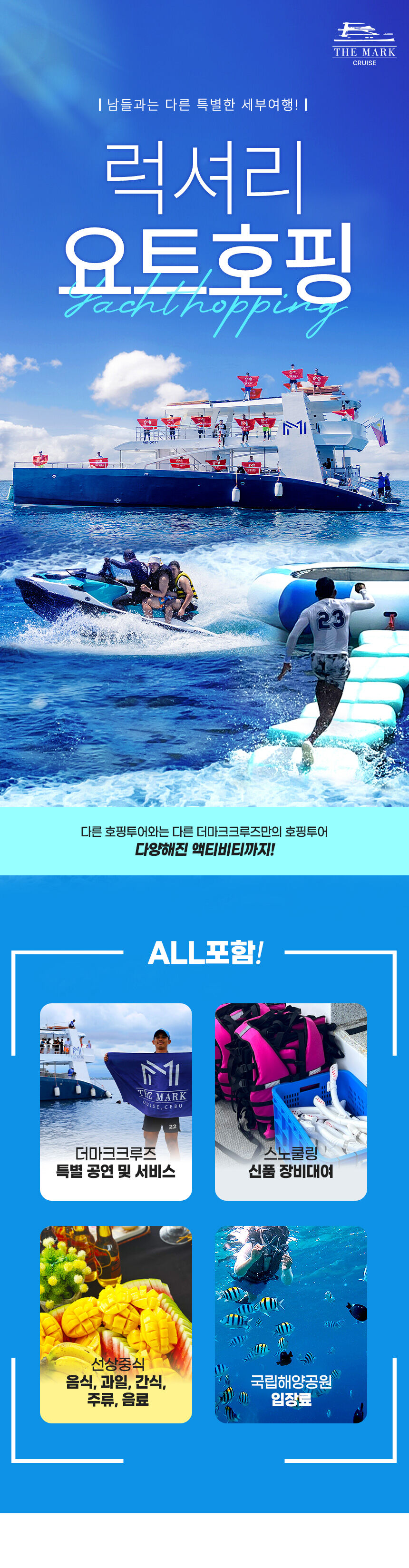 [세부호핑]더마크크루즈 요트호핑-점심포함/자쿠지보유/2개섬스노클링/제트스키무료탑승