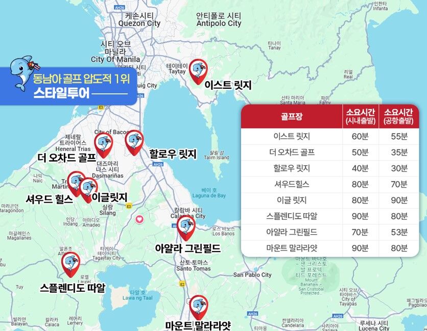 - 위치 또한 마닐라 시내에서 약 1시간 ~ 1시간 30분 가량이면 도착 가능하여 접근성이 뛰어 납니다.