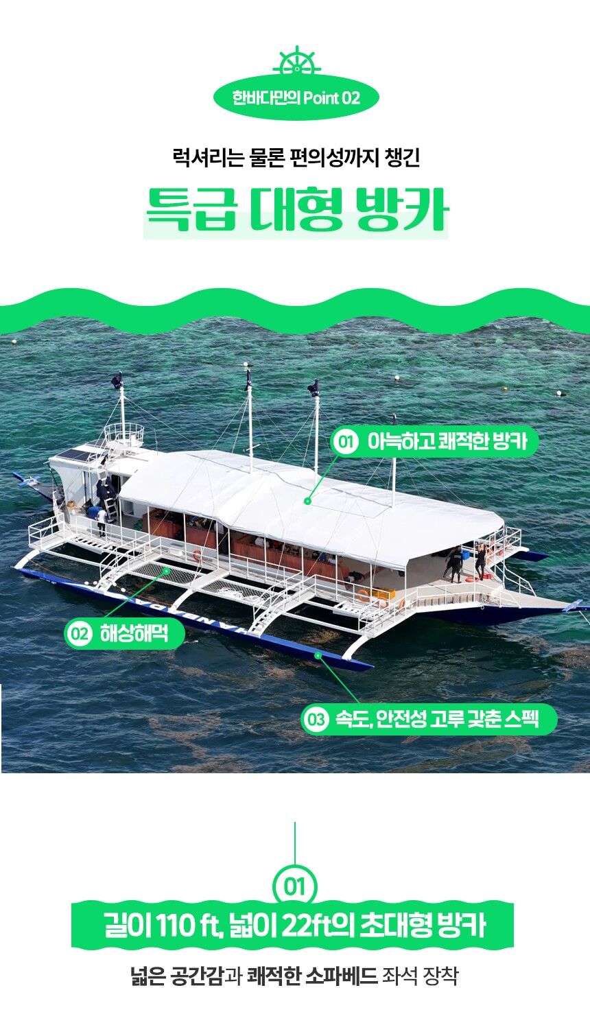 [보홀 한바다 호핑] 초대형 프리미엄방카와 함께 / 돌고래, 발리카삭, 절벽포인트 호핑