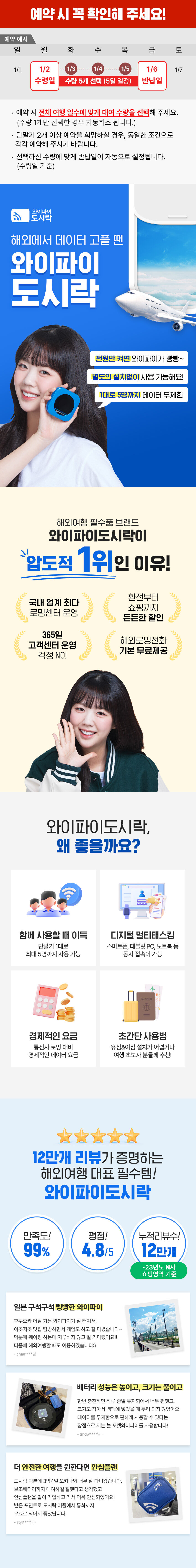 [포켓와이파이] 일본 와이파이도시락 매일 [2GB,무제한] 데이터 + 해외로밍전화 무료 평점 4.606843575419 · 리뷰 4296건 포함 1. 와이파이도시락 단말기 2. 와이파이도시락 파우치 3. 충전기 & 충전 케이블 4. 변환플러그(요청 시) 5. 사용가이드북 6. 도시락톡 해외무료통화 100분 무료 불포함 포함사항 외 부가서비스 마이리얼트립에서 예약하기 나고야 목록 도시 목록