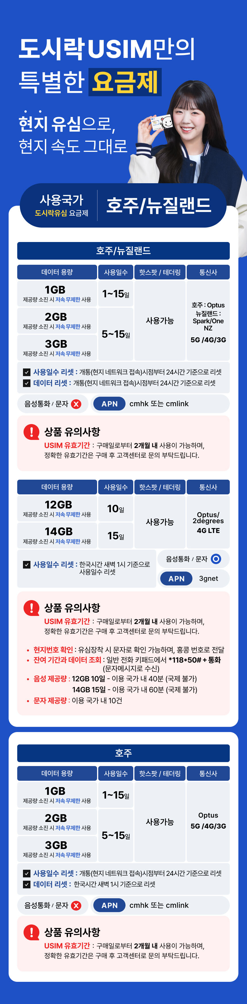 [호주 뉴질랜드 유심] 데이터 무제한 호주 뉴질랜드 시드니 유심칩 인천공항 수령 본문: 로컬 DB 동기화 상세 평점 5 · 리뷰 1건 포함 현지유심 + 유심 추출핀 + 매뉴얼 등 불포함 그 외 상품 비용 마이리얼트립에서 예약하기 인천 목록 도시 목록