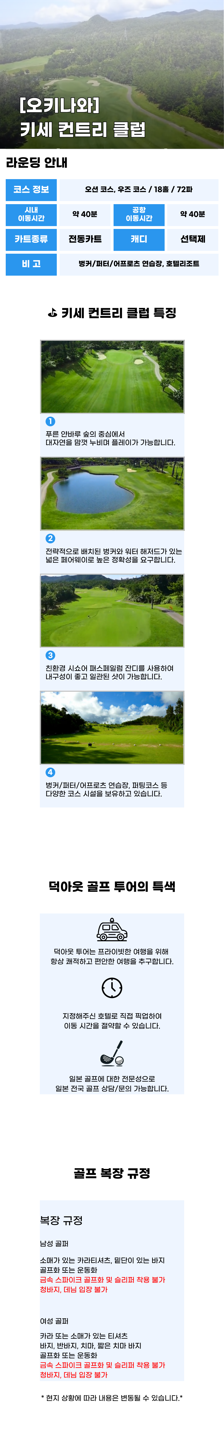 예약 확정 후 기재해주신 호텔 로비 혹은 나하 공항에서 티업 시간에 맞춰 픽업 합니다.