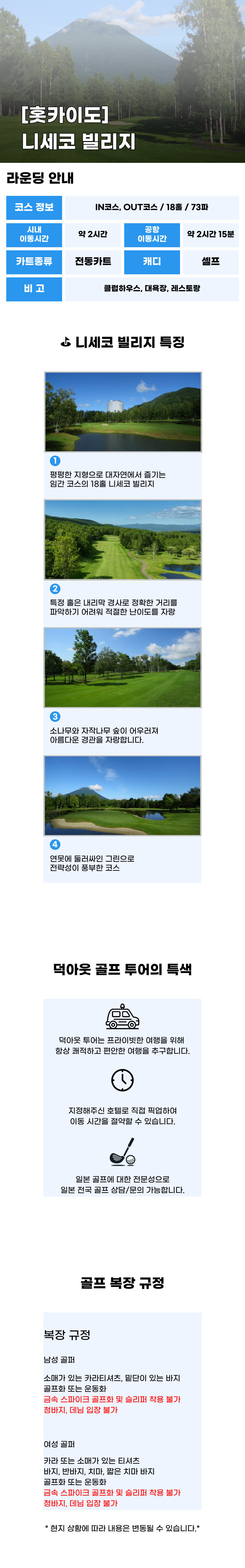 [홋카이도 골프 투어] 니세코빌리지 18홀 라운딩 (왕복 픽업 선택가능)
