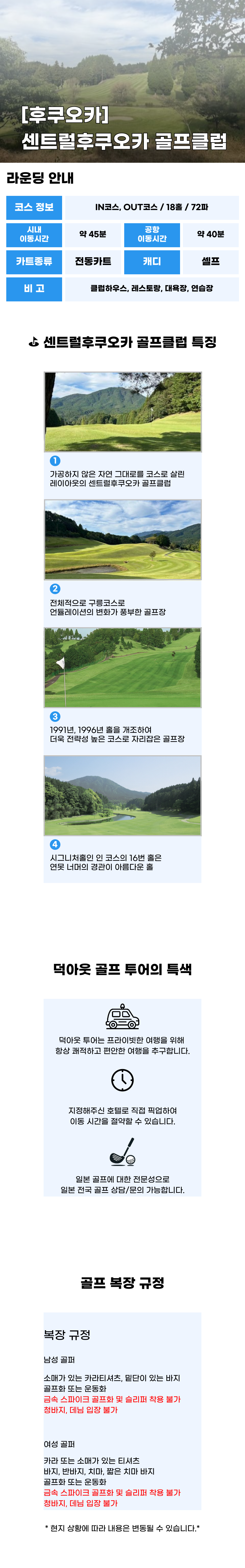[후쿠오카 골프 투어] 센트럴후쿠오카 골프클럽 18홀 라운딩 (왕복 픽업 선택가능)