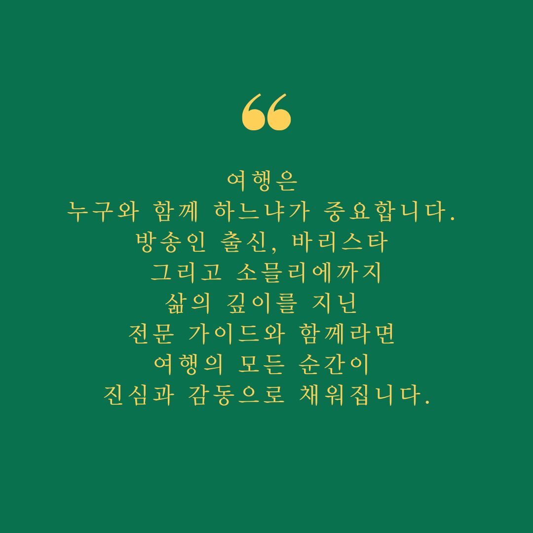 "섬세함과 따뜻함, 여성 가이드만의 감성과 방송인으로서의 전문성을 모두 갖춘 특별한 여행 경험."