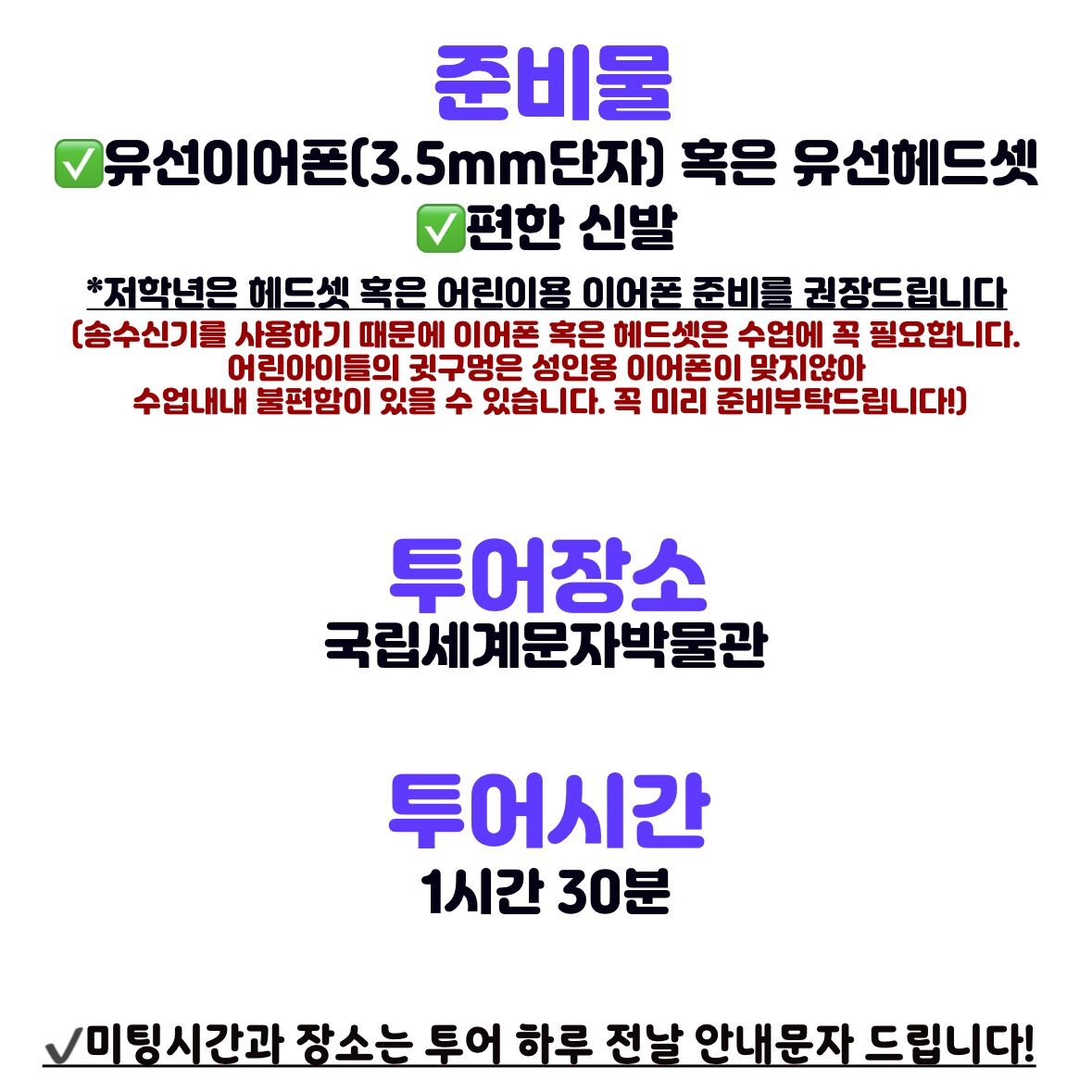 [키즈] 세계사시리즈 2탄! 국립세계문자박물관에서 역사탐험 떠나요 본문: 로컬 DB 동기화 상세 평점 5 · 리뷰 8건 포함 🖤무선 송수신기 대여비 🤍자체제작 워크지(학습지) 🖤가이드비 🤍입장료(무료) 불포함 *교통비 마이리얼트립에서 예약하기 서울 목록 도시 목록