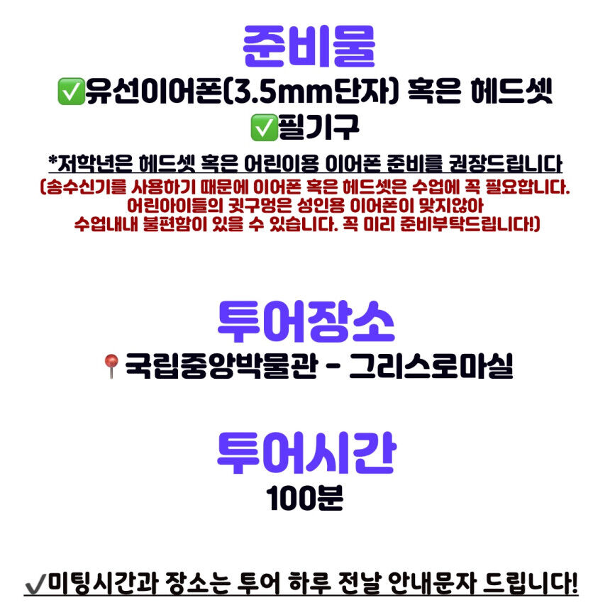 📌본 투어는 100%부모분리 초등 대상 키즈투어입니다.
