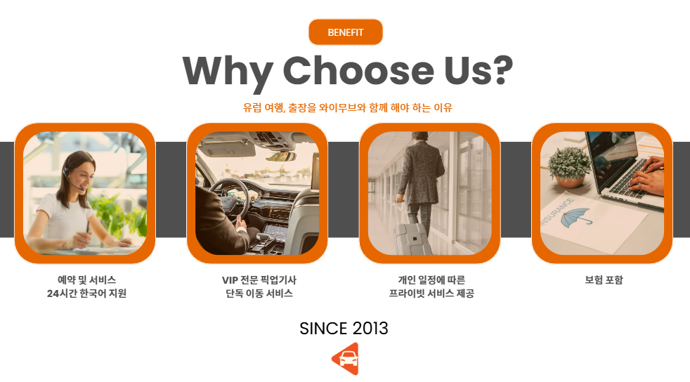 - 한국인 담당자가 기사님과 만나실 때까지 카카오톡으로 도와드리기 때문에 비행기 연착이나 기사님과 커뮤니케이션에 대해 걱정 하지 않으셔도 됩니다!