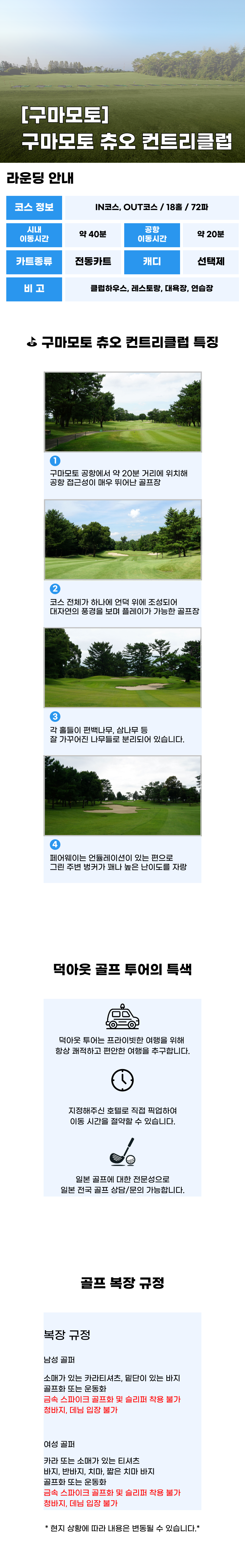 [구마모토 골프 투어] 구마모토 츄오 컨트리클럽 18홀 라운딩 (왕복 픽업 선택가능)
