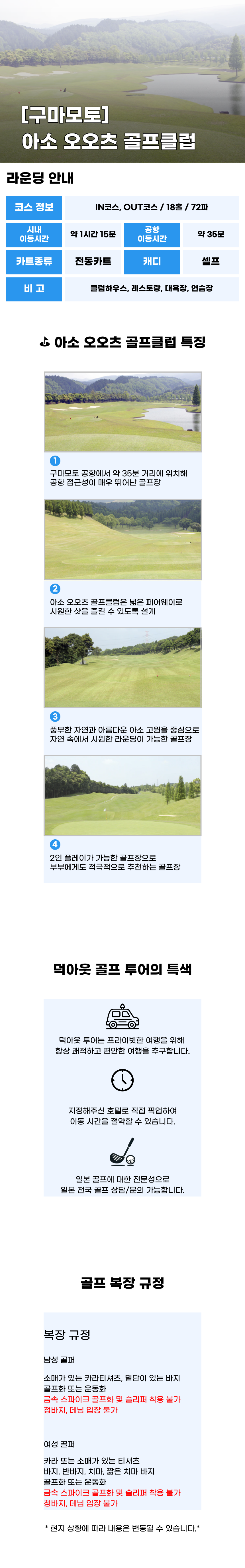 [구마모토 골프 투어] 아소오오츠 골프클럽 18홀 라운딩 (왕복 픽업 선택가능)