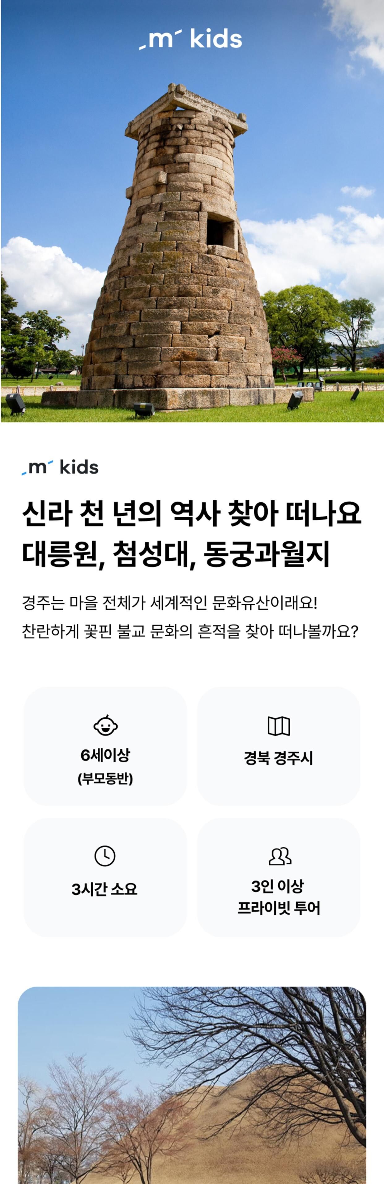 [키즈][경주] 가족&지인 단독진행(3인이상)-대릉원 첨성대 동궁과 월지 평점 4.8653846153846 · 리뷰 52건 포함 해설비용(가이드비용), 워크북 *시간을 변경하여 오후1시부터도 투어 가능합니다. 불포함 개인 입장료, 보험료 마이리얼트립에서 예약하기 경주 목록 도시 목록