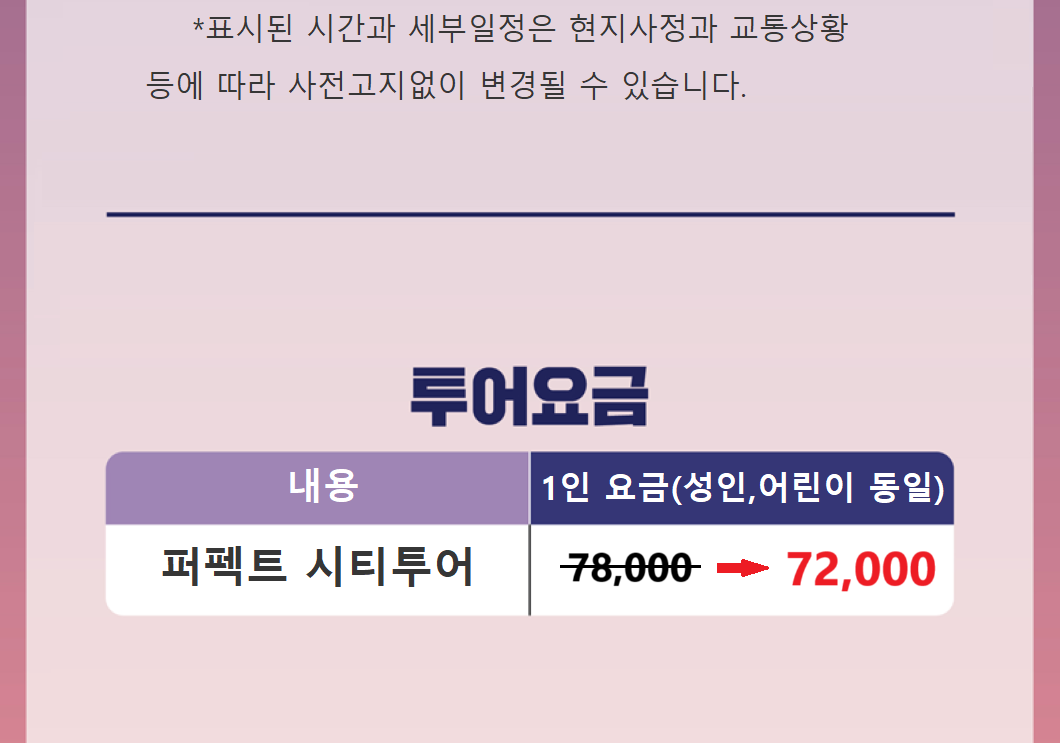 * 현지 외국인 가이드가 투어를 진행하며, 영어 의사소통이 가능합니다.