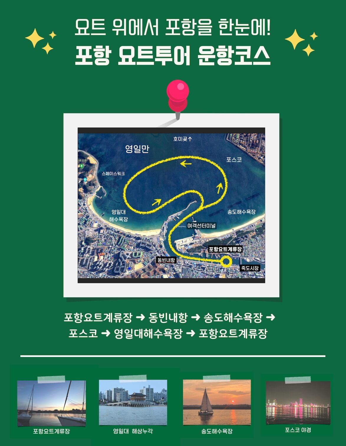 포항요트 계류장 -> 동빈내항 -> 영일대 -> POSCO -> 포항요트 계류장