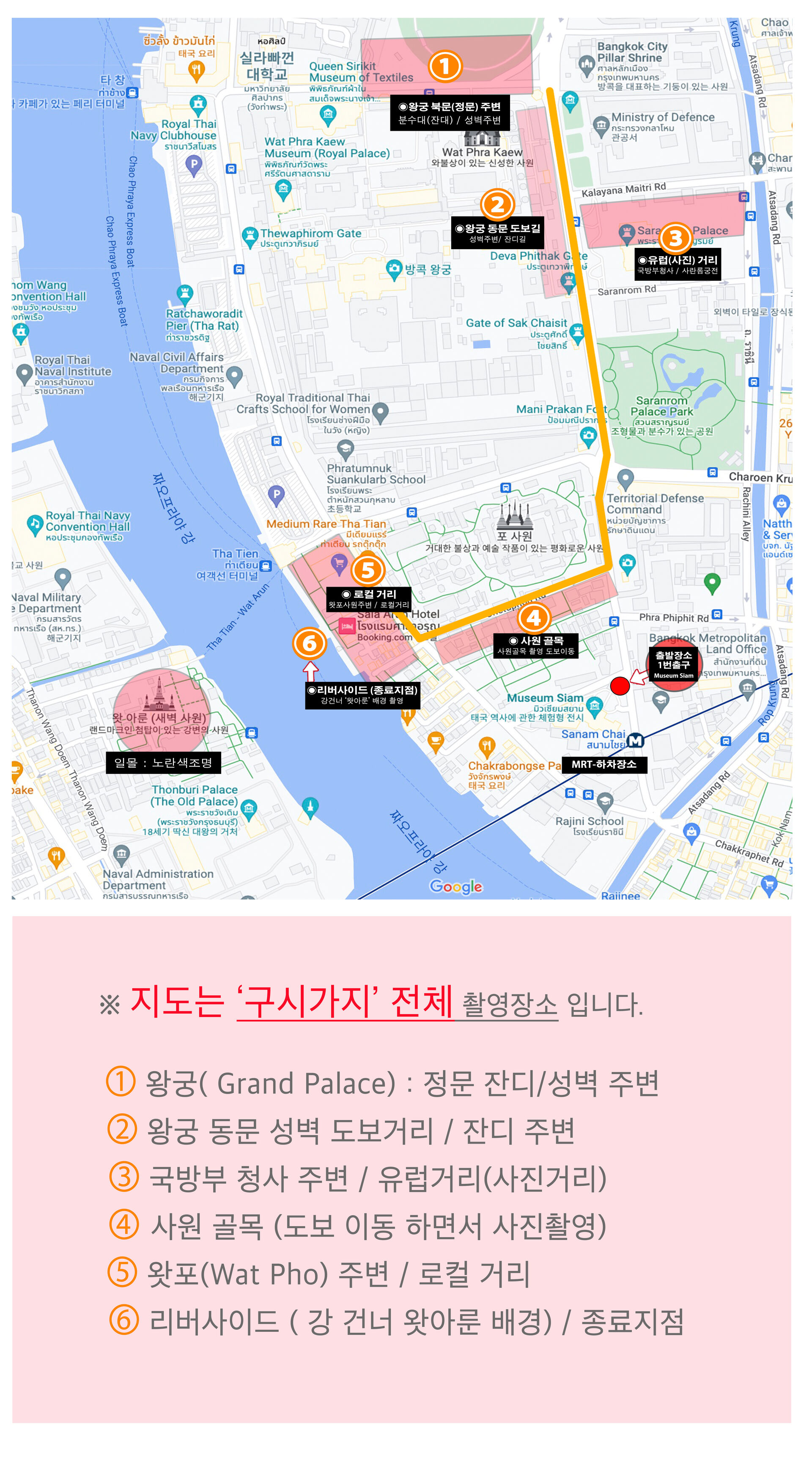 ⦿오후4시 30분 ~ 6시 30분 전후 종료 (방콕 구시가지 / 리버사이드 선셋(노을) / 공원 등 장소조율) - 2시간 내외