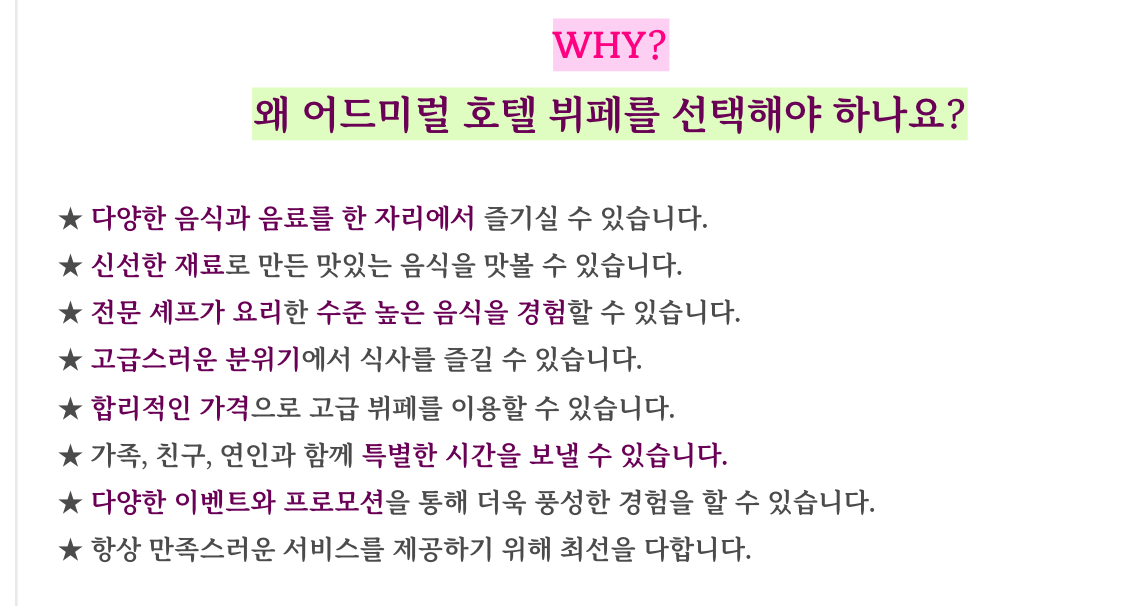 어드미럴 호텔 뷔페에서 매일 할인된 금액으로