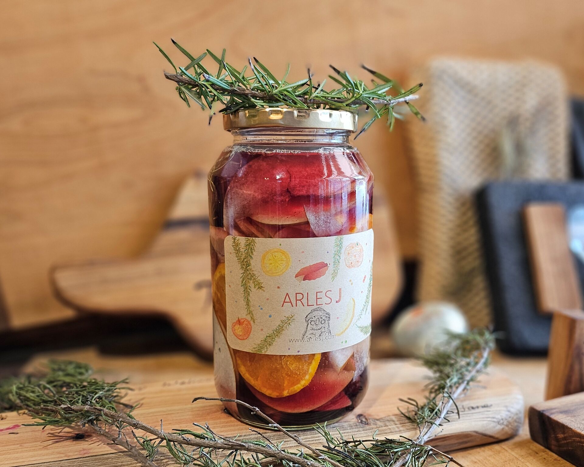- 병입 및 포장 : 완성된 따뜻한 뱅쇼를 소독된 병에 담고, 감성적인 패키지로 마무리합니다.