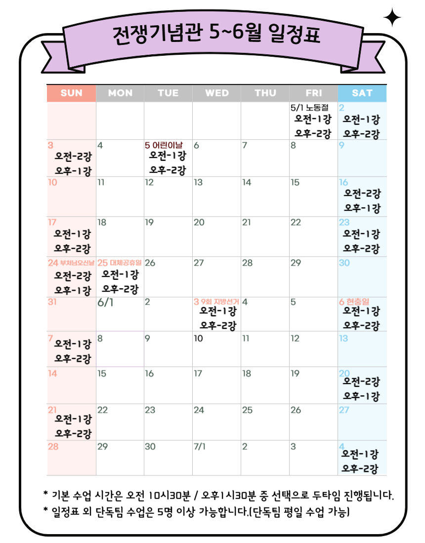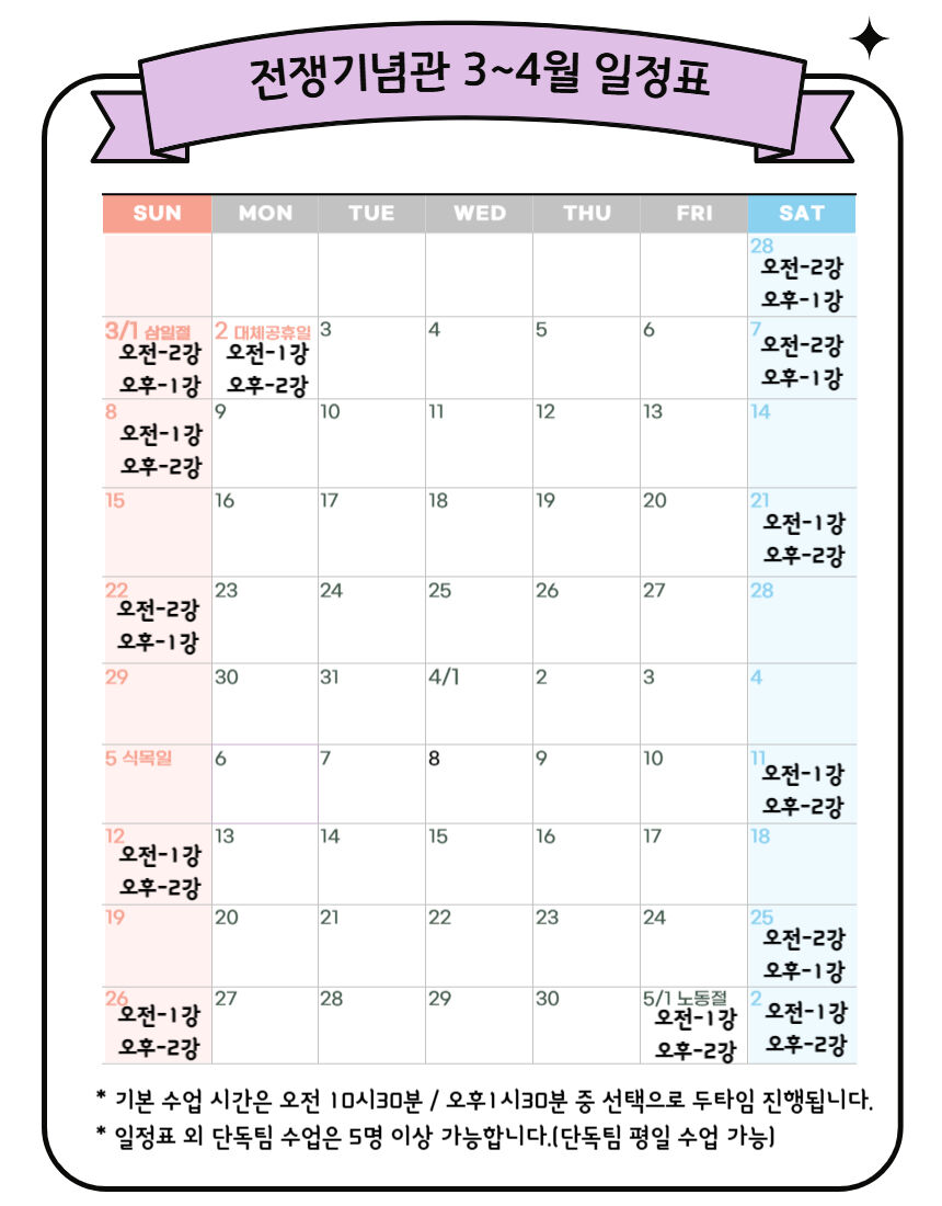 [키즈/봄체험][전쟁기념관] 술술 풀어가는 전쟁이야기(2회 완성) 본문: 로컬 DB 동기화 상세 평점 5 · 리뷰 4건 포함 입장권, 체험료, 맞춤 교재, 무선 송수신기 사용료 불포함 기타 개인경비 등 마이리얼트립에서 예약하기 서울 목록 도시 목록
