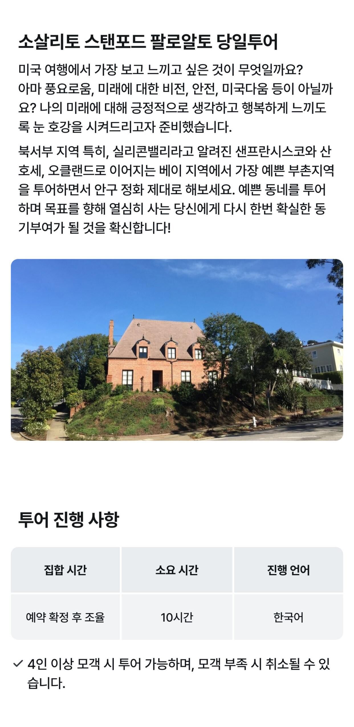 샌프란시스코 실리콘밸리-소살리토-스탠포드-팔로알토 돌아보기 평점 4.9230769230769 · 리뷰 13건 포함 차량유류비 톨비 주차비 불포함 개별 점심식사 마이리얼트립에서 예약하기 하남 목록 도시 목록