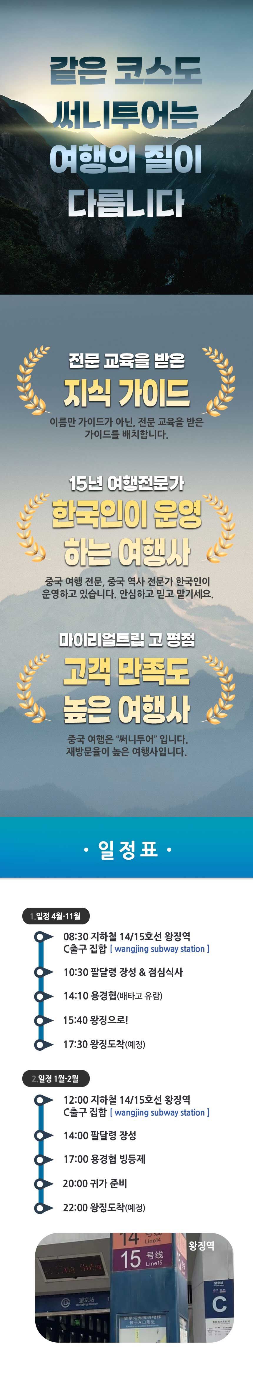 - ** 불포함 사항의 비용은 현금으로 부탁드립니다. ■ 용경협(빙등제 :1월~2월// 유람선 포함 : 4월~11월) :¥140 ■ 장성 케이블(왕복): ¥140 ■ 여행자 보험 ■ 식사