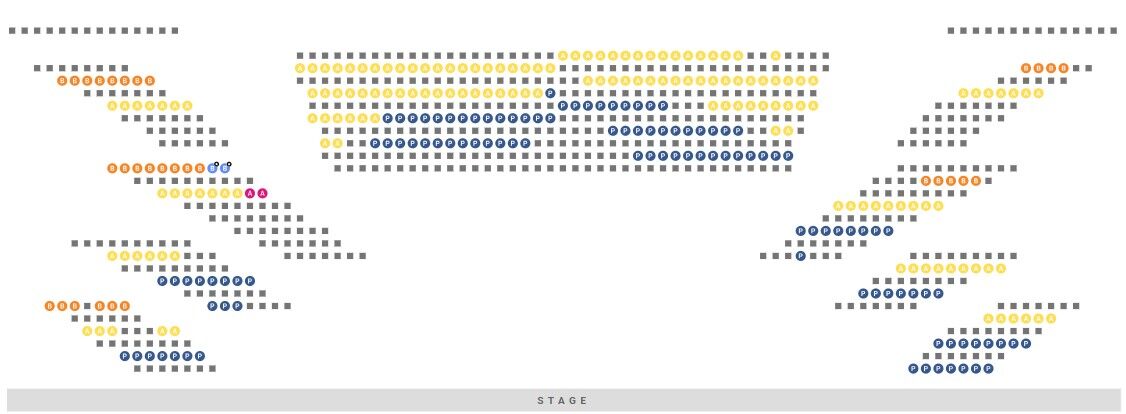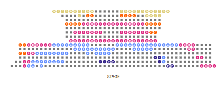A석은 스톨 앞쪽 열과 서클 뒤쪽 열에 있습니다.