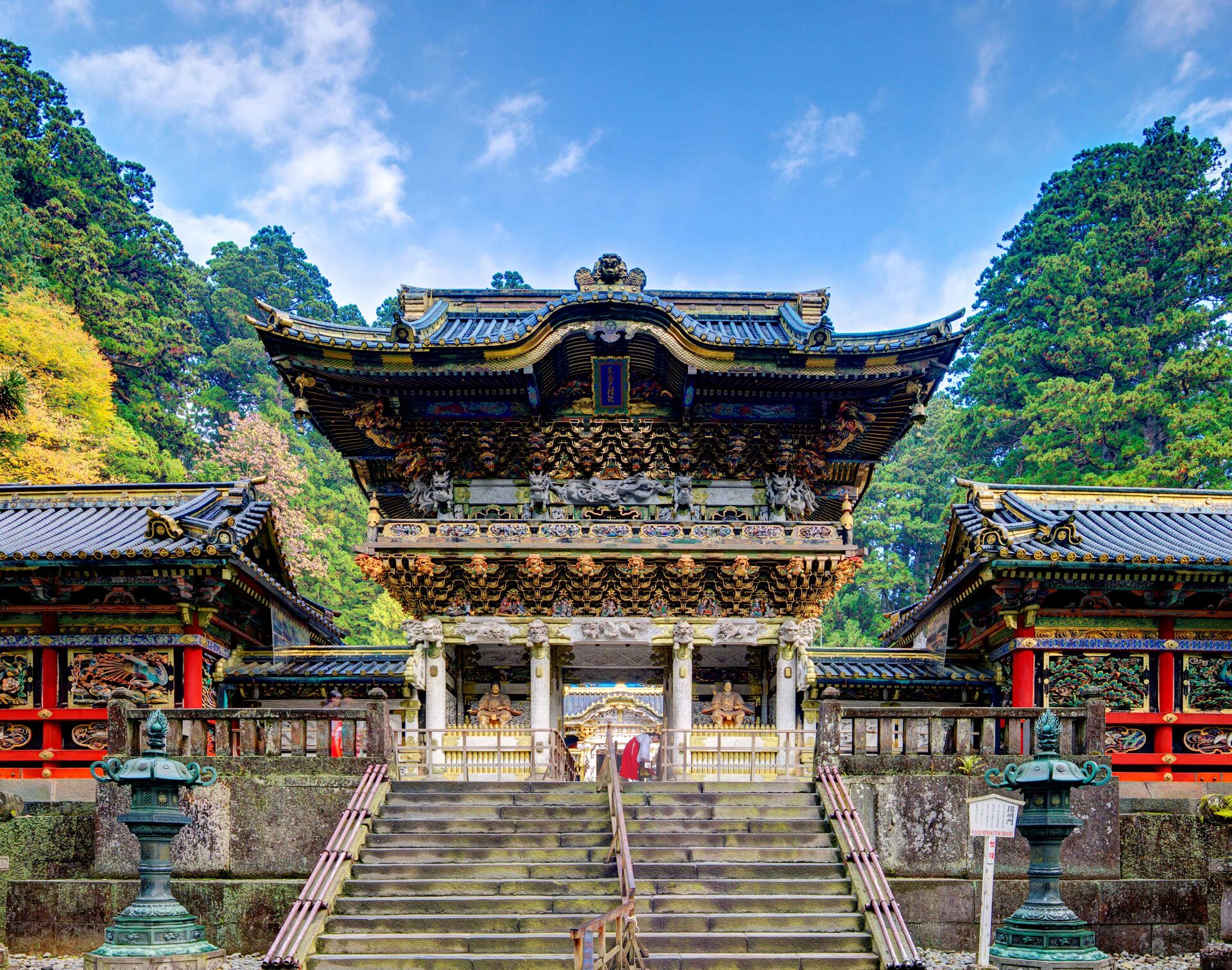 요메이몬 (양명문): 500여 종의 정교한 조각으로 장식된 문으로, '일본에서 가장 아름다운 문'이라 불립니다.