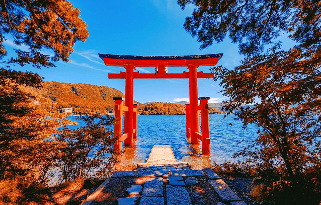 【하코네 신사】하코네 신사는 유명한 산악 휴양지인 하코네산에 위치하고 있으며, 아름다운 아시 호수와 인접해 있습니다. 오랜 역사를 지닌 고대 신사일 뿐만 아니라 매우 유명한 관광 명소이기도 합니다.