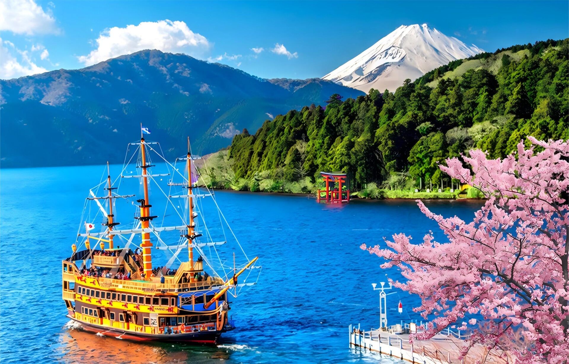 【아시 호수】아시 호수는 하코네 중심부에 숨겨져 있습니다. 3000년 전 하코네산의 화산 폭발로 형성된 화산호로, 아시호가 유명한 아시호에서 후지산의 아름다운 풍경을 감상할 수 있습니다.