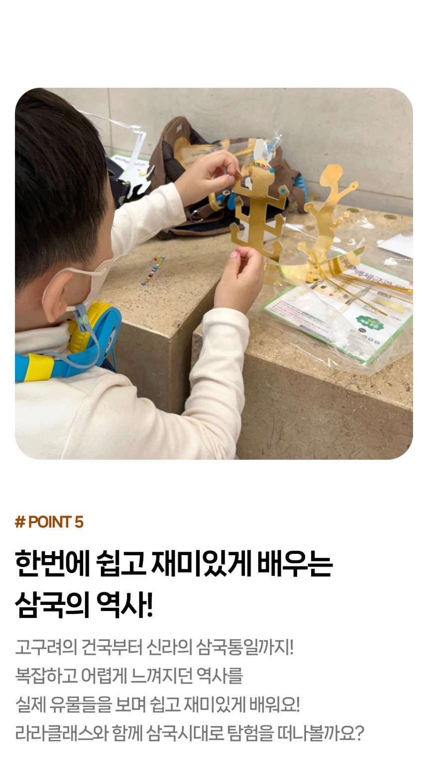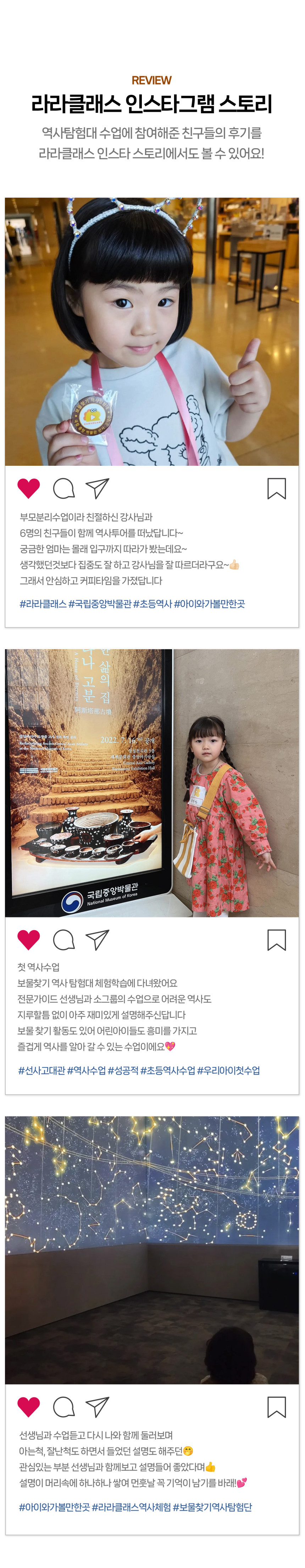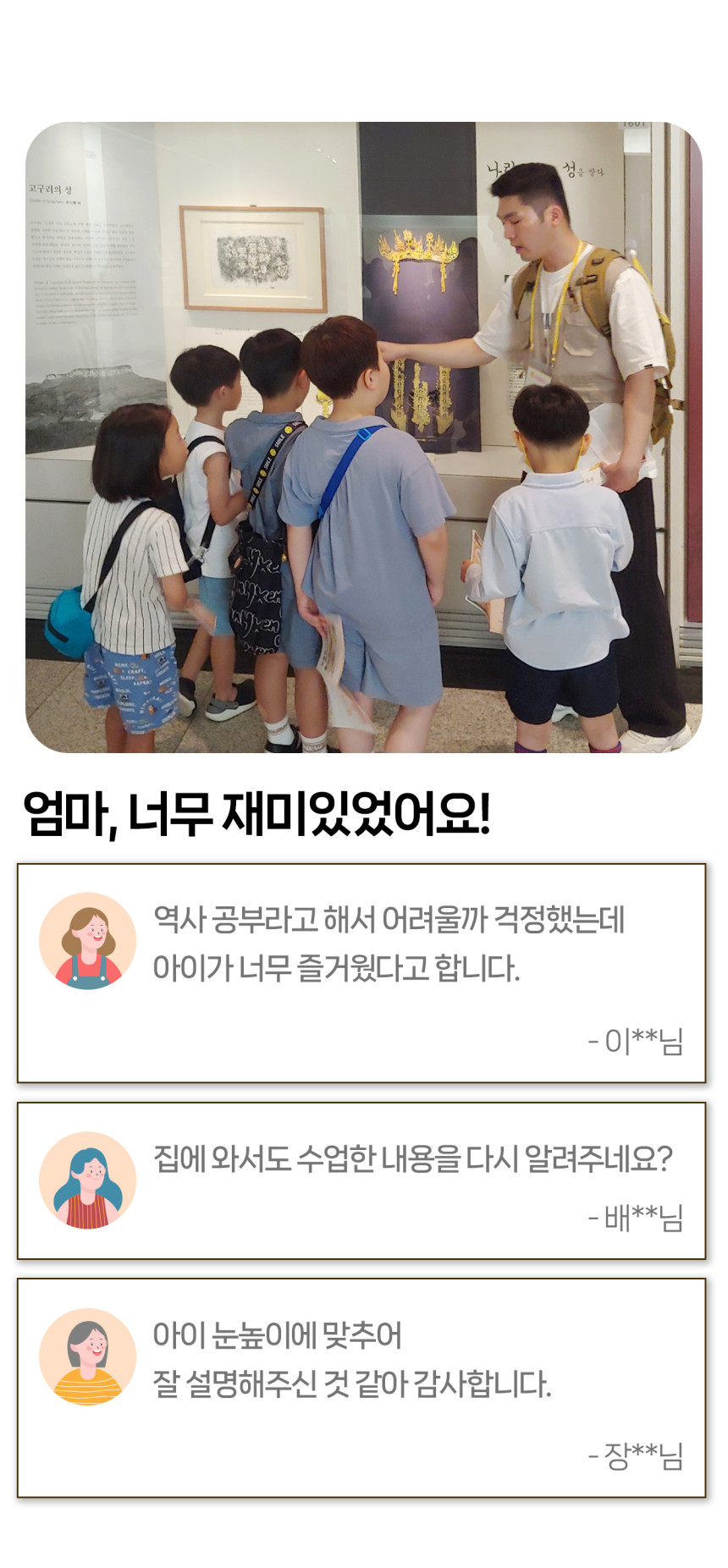 [라라클래스] 국립중앙박물관 삼국시대 초등저학년 "Premium" 역사탐험대 Season3 본문: 로컬 DB 동기화 상세 평점 5 · 리뷰 3건 포함 * 특허받은 역사 커리큘럼 * 역사 전공 강사와 함께 * 초등 120분 수업 * 라라클래스 자체 제작 교재 * 연계활동 키트 불포함 - 물 - 필기도구 - 기타 개인경비 마이리얼트립에서 예약하기 서울 목록 도시 목록