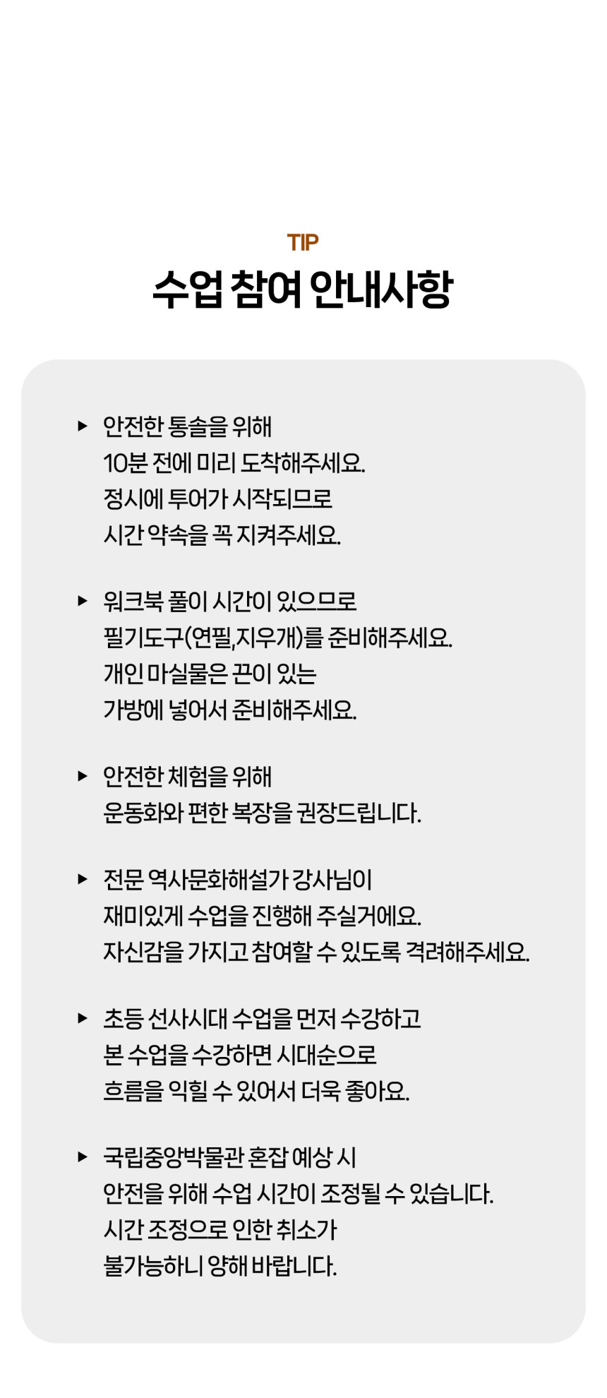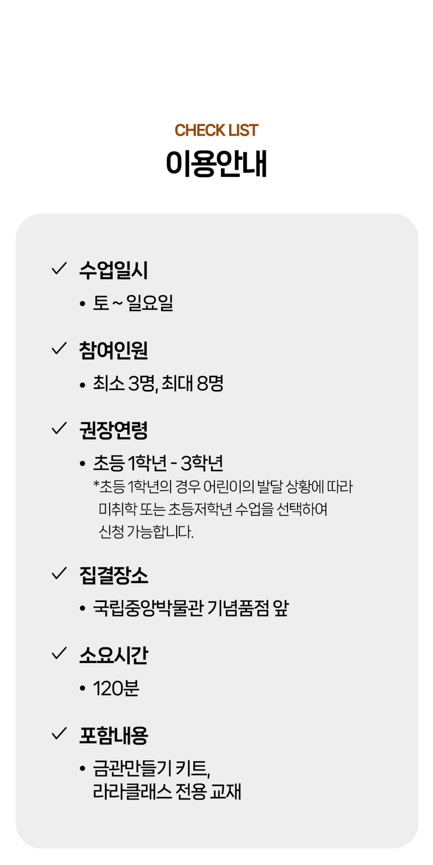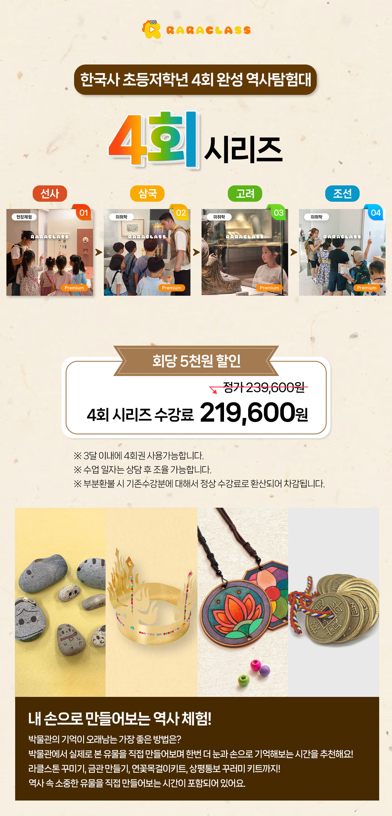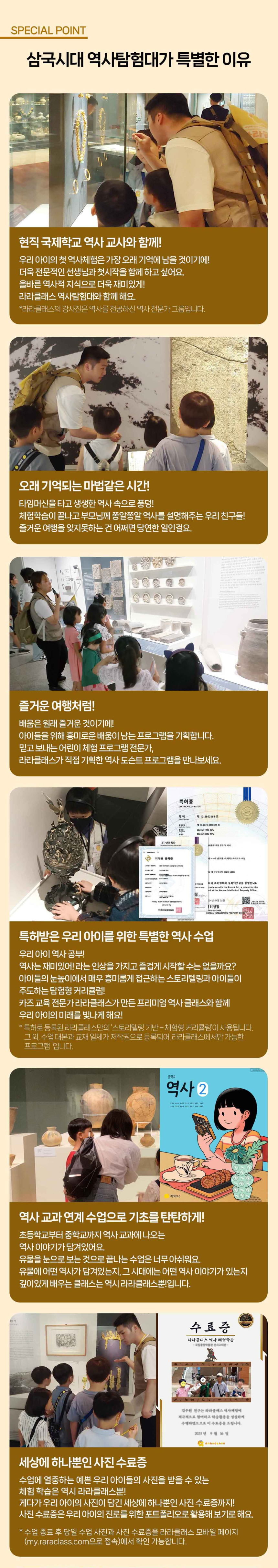 [라라클래스] 국립중앙박물관 삼국시대 초등저학년 "Premium" 역사탐험대 Season3 본문: 로컬 DB 동기화 상세 평점 5 · 리뷰 3건 포함 * 특허받은 역사 커리큘럼 * 역사 전공 강사와 함께 * 초등 120분 수업 * 라라클래스 자체 제작 교재 * 연계활동 키트 불포함 - 물 - 필기도구 - 기타 개인경비 마이리얼트립에서 예약하기 서울 목록 도시 목록