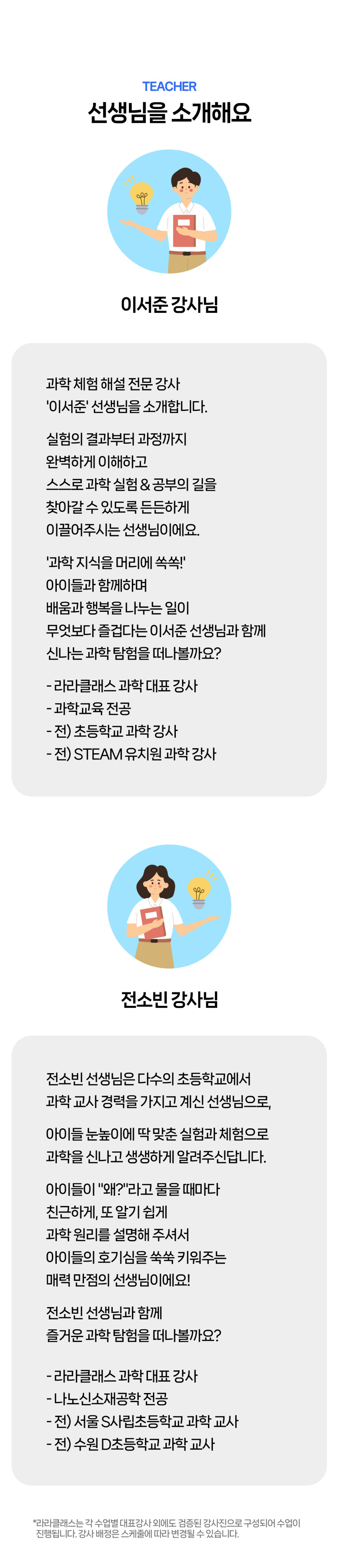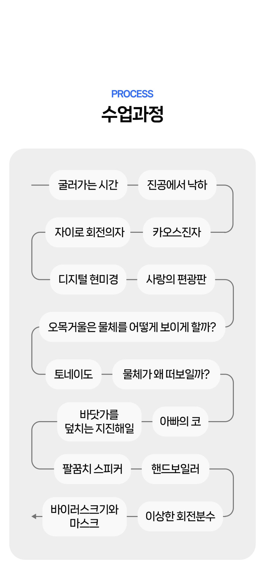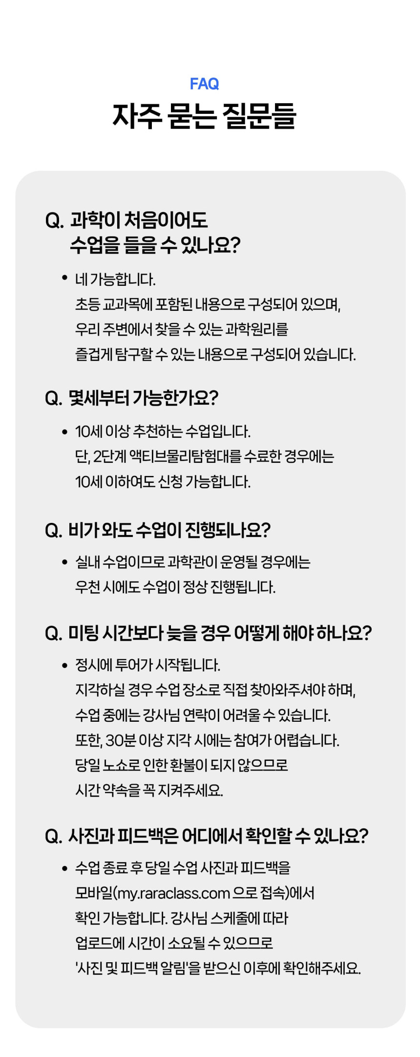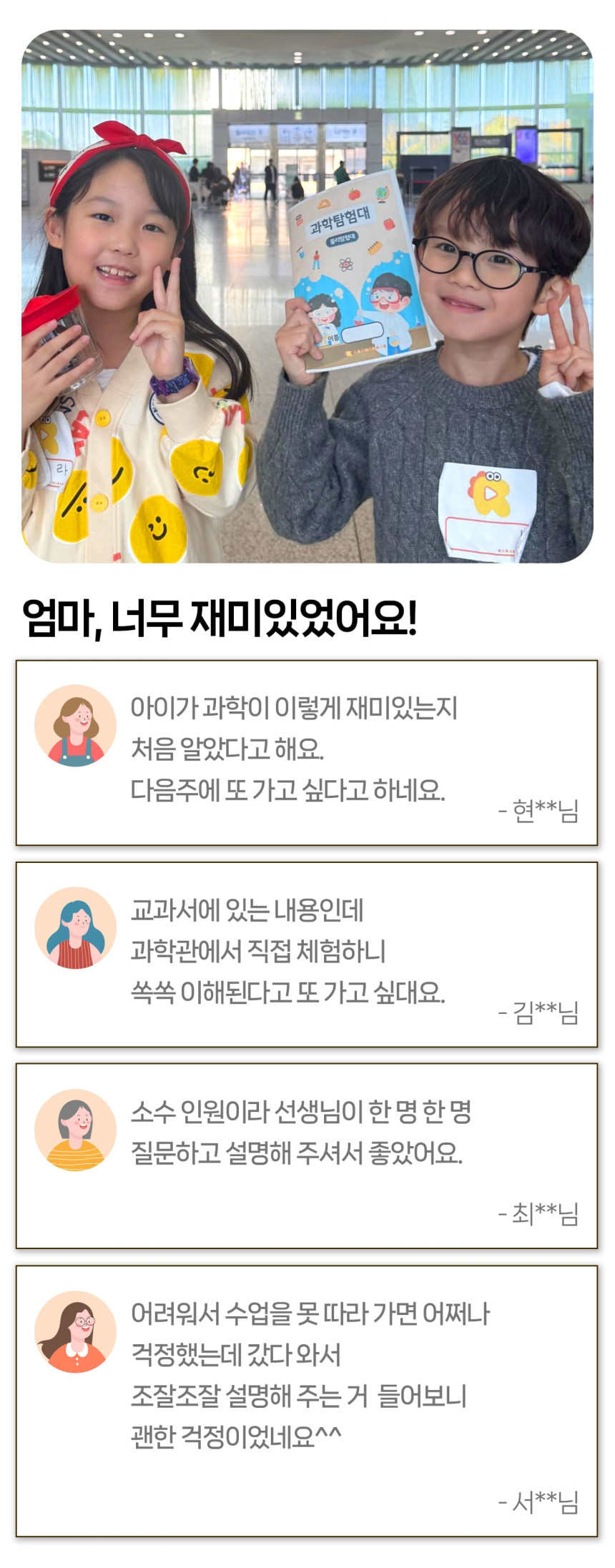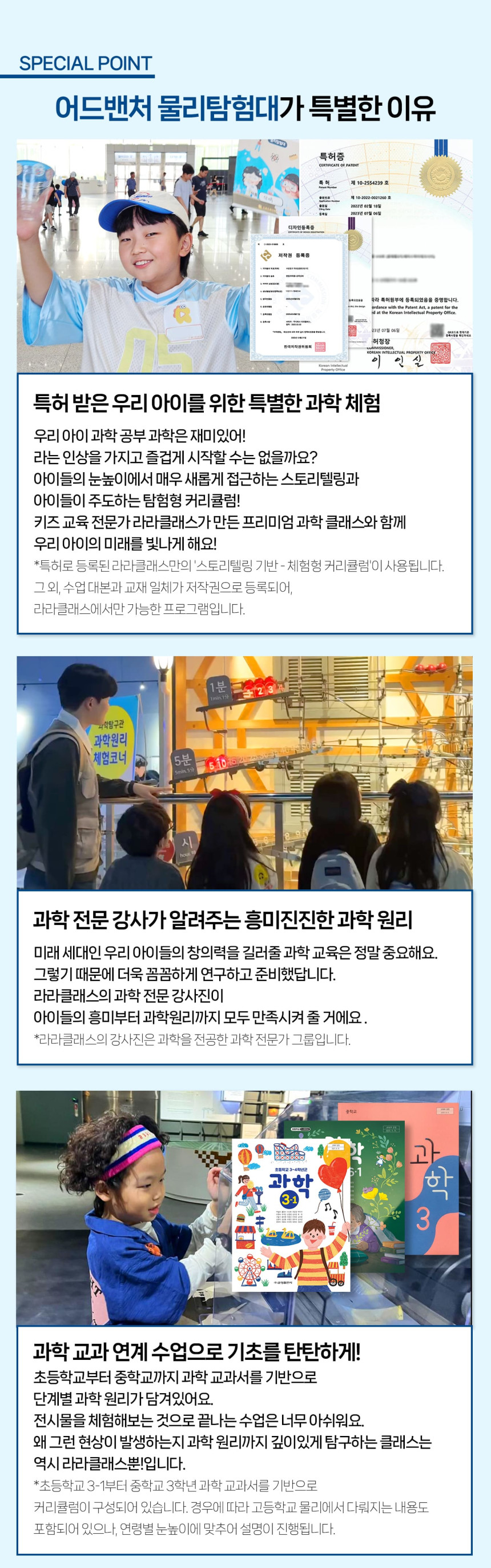 [라라클래스] 어드밴처 물리탐험대 10-13세 추천! 과학관으로 과학 원리 탐구하러 가요! 본문: 로컬 DB 동기화 상세 평점 5 · 리뷰 3건 포함 * 특허받은 과학 커리큘럼 * 과학 전공 강사와 함께 * 초등 120분 수업 * 라라클래스 자체 제작 교재 불포함 - 기타 개인경비 - 필기도구 마이리얼트립에서 예약하기 과천 목록 도시 목록
