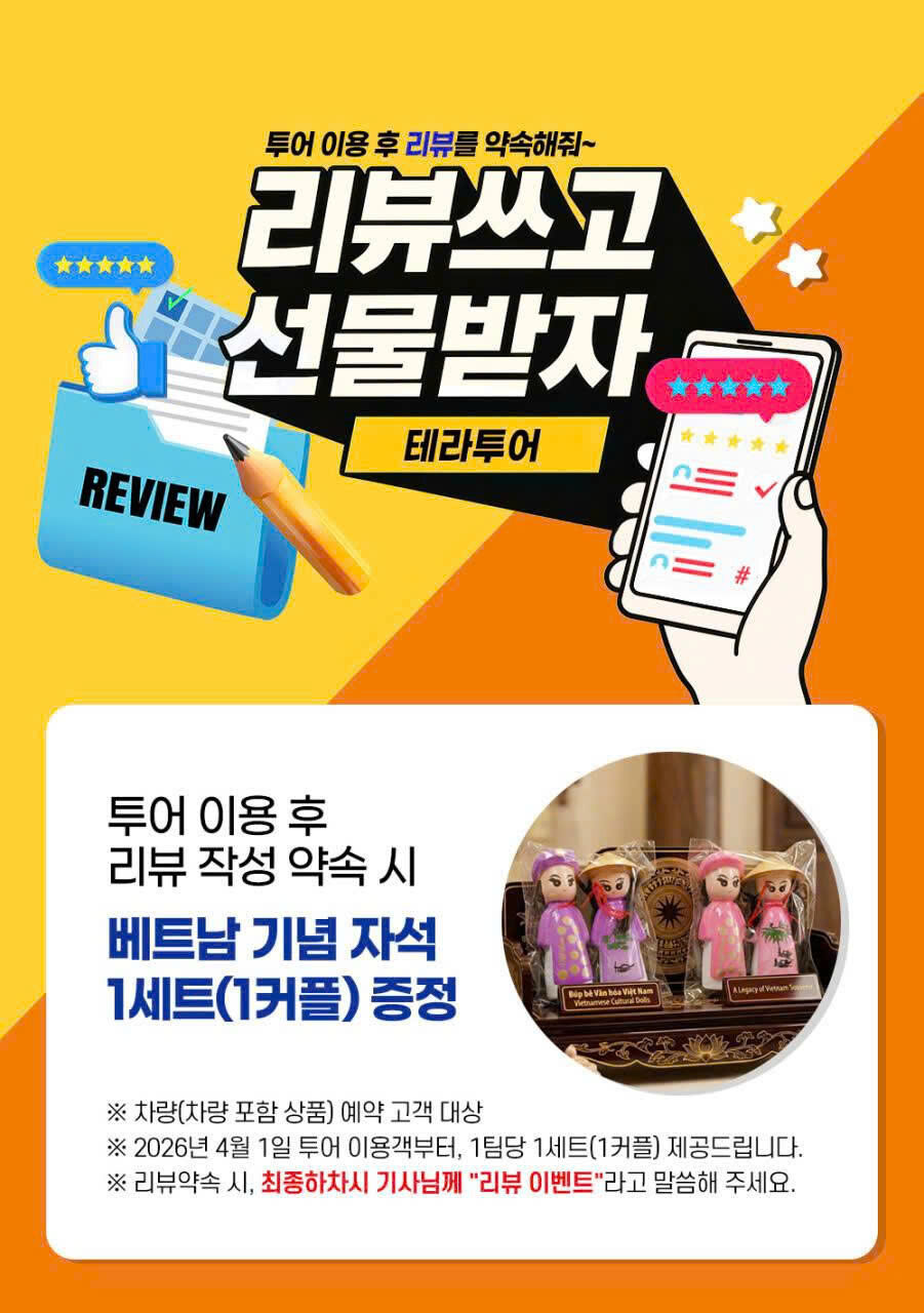 - 차량 추가사용 1시간당 10만동이며, 팁과 별도로 지불하셔야 합니다. (사전신청필수)