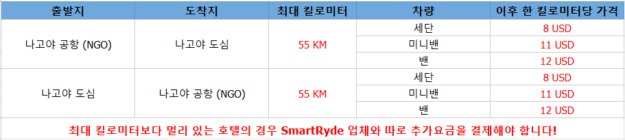 나고야 공항 ⇔ 나고야 도심 - 픽업/샌딩 (편도, 차량 1대 가격,차량 보험)