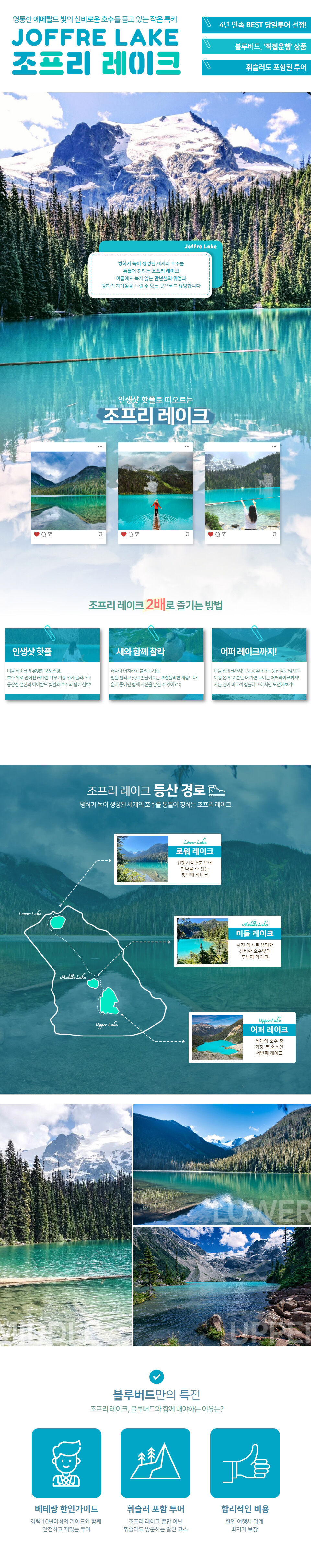 [당일투어] 블루버드여행사 조프리레이크 평점 5 · 리뷰 2건 포함 한인 가이드, 전용차량, 주차, 유류비 불포함 가이드/기사 팁($20/인당) 조프리 주립 공원 DAY PASS 식사/매너 팁 선택관광 항공권 및 여행자보험 마이리얼트립에서 예약하기 밴쿠버 목록 도시 목록